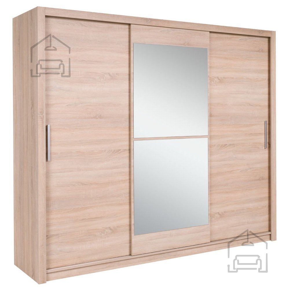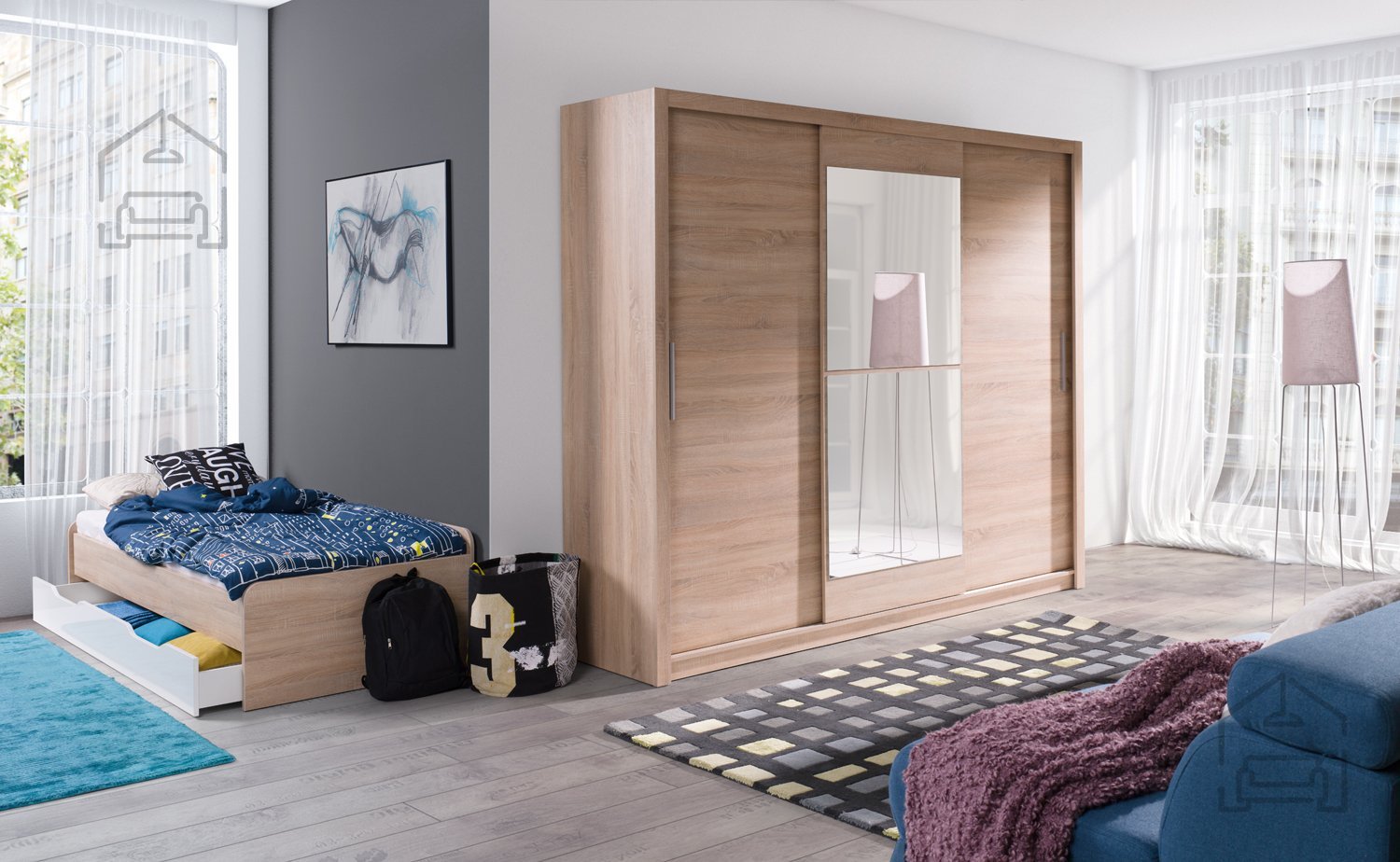 Wir präsentieren Ihnen den Kleiderschrank mit Schiebetüren und Spiegel Mistral, ein hochwertiges Möbelstück, das Funktionalität, Eleganz und modernes Design vereint. Mit seinen Maßen von 250x60x206 cm ist dieser Schrank die perfekte Wahl für alle, die ihren Raum optimieren und gleichzeitig einen Hauch von Raffinesse in ihr Zuhause bringen möchten.