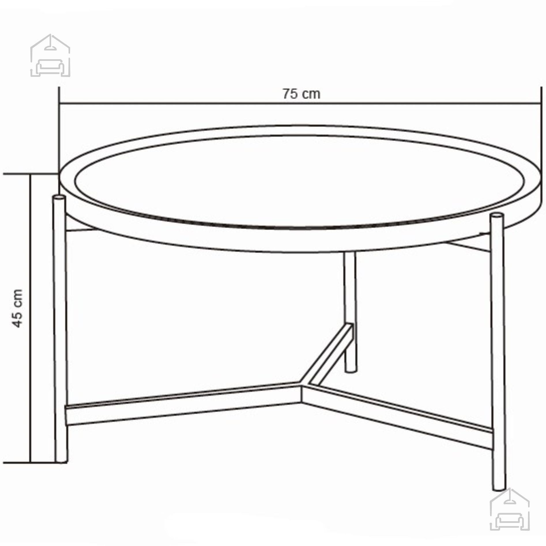Das stabile Metallgestell sorgt mit seinem symmetrischen Design und den ausgestellten Beinen sowohl für gute Stabilität als auch für ein interessantes Erscheinungsbild. Das Gestell ist pulverbeschichtet, um einen guten Schutz vor Umwelteinflüssen zu gewährleisten. Die maximale Belastbarkeit des Tisches beträgt 30 kg.