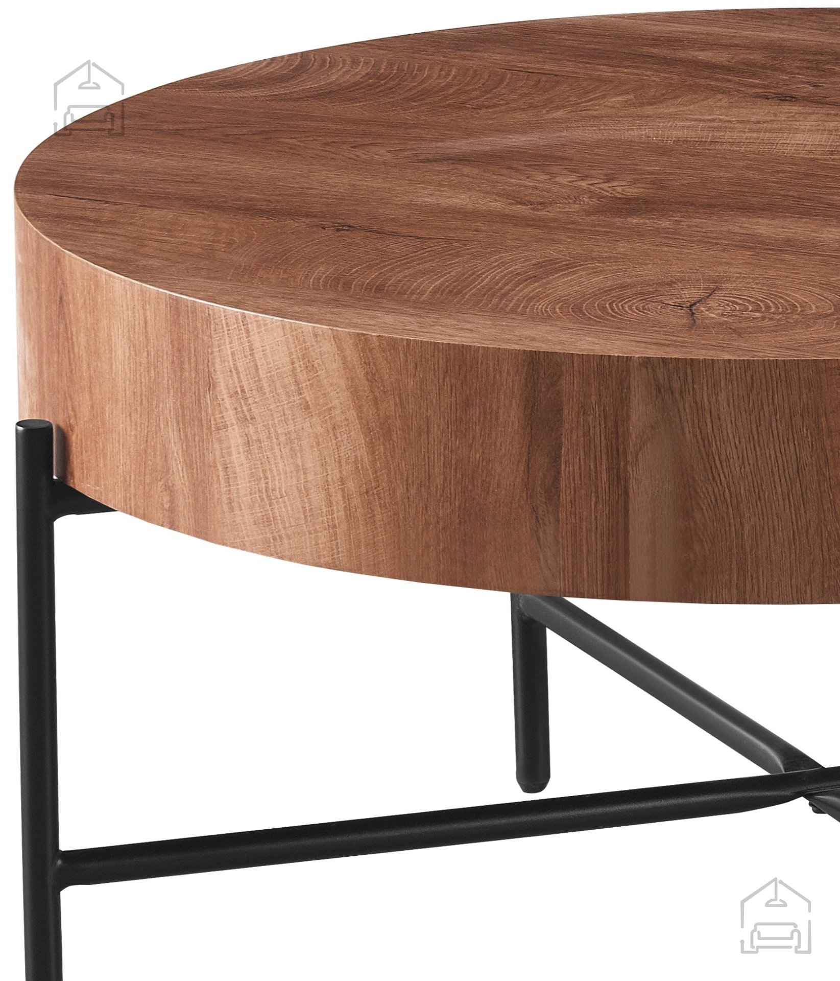 Der Couchtisch Kamik besteht aus hochwertigen Materialien, die Langlebigkeit und ästhetische Attraktivität garantieren. Die Tischplatte ist aus MDF gefertigt, das mit Melaminpapier beschichtet ist. Dies verleiht ihr eine glatte Oberfläche sowie Kratz- und Fleckenresistenz. Die elegante braune Farbe des Tisches lässt sich problemlos mit verschiedenen Farbkonzepten und Möbelstilen kombinieren.