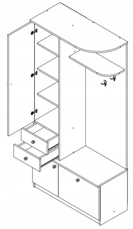 Das Produkt ist in elegantem Weiß erhältlich, das sich perfekt mit verschiedenen Einrichtungsstilen kombinieren lässt. Der Flur Max ist mit der Möglichkeit für eine linke oder rechte Aufstellung konzipiert, was Flexibilität bei der Platzierung in Ihrem Raum ermöglicht. Diese Flexibilität ist entscheidend für die Optimierung des Raumes und die Gewährleistung maximaler Funktionalität.