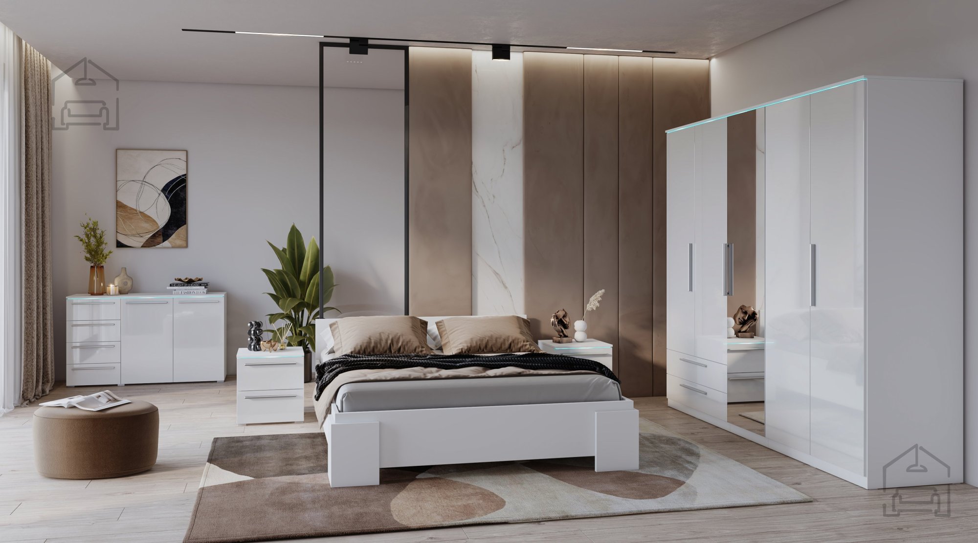 Wir präsentieren Ihnen den wunderschönen Kleiderschrank India S 2 in edlem Weiß, der Ihrem Raum einen Hauch von Eleganz und Modernität verleiht. Dieser geräumige Schrank mit den Maßen 225x60x215 cm ist auf die modernen Bedürfnisse und die Ästhetik abgestimmt. Gefertigt aus einer hochwertigen Möbelplatte mit 15 mm Stärke, garantiert er Langlebigkeit und eine lange Lebensdauer. Die Rückwand besteht aus einer 3 mm starken HDF-Platte, die zusätzlich zur Stabilität und Robustheit des Schranks beiträgt.