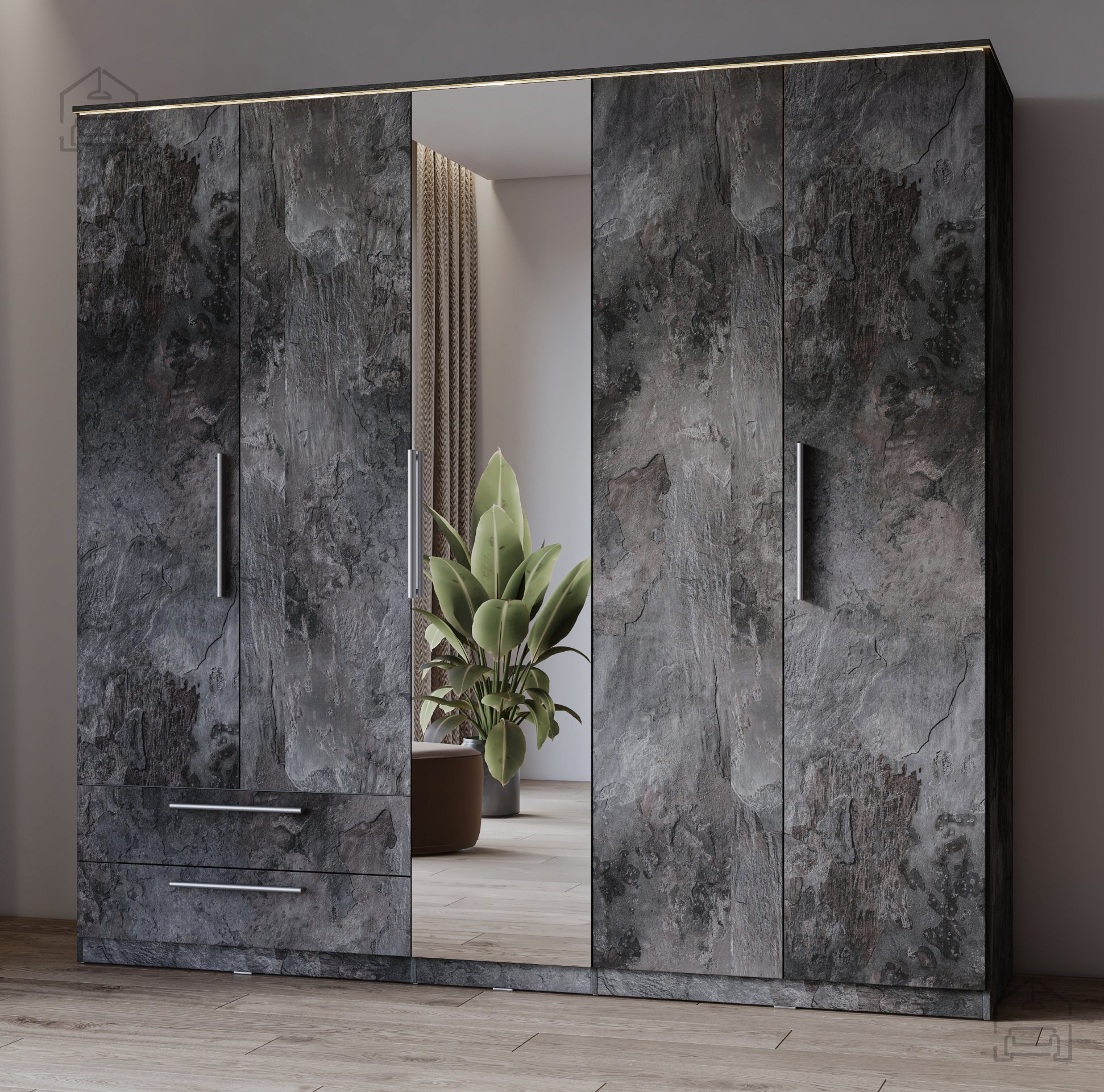 India S 2 - Schiefer ist so konzipiert, dass er den Bedürfnissen eines modernen Haushalts entspricht. Egal ob im Schlafzimmer, Flur oder Ankleidezimmer – dieser Schrank sorgt dafür, dass Ihr Raum ordentlich und makellos wirkt.