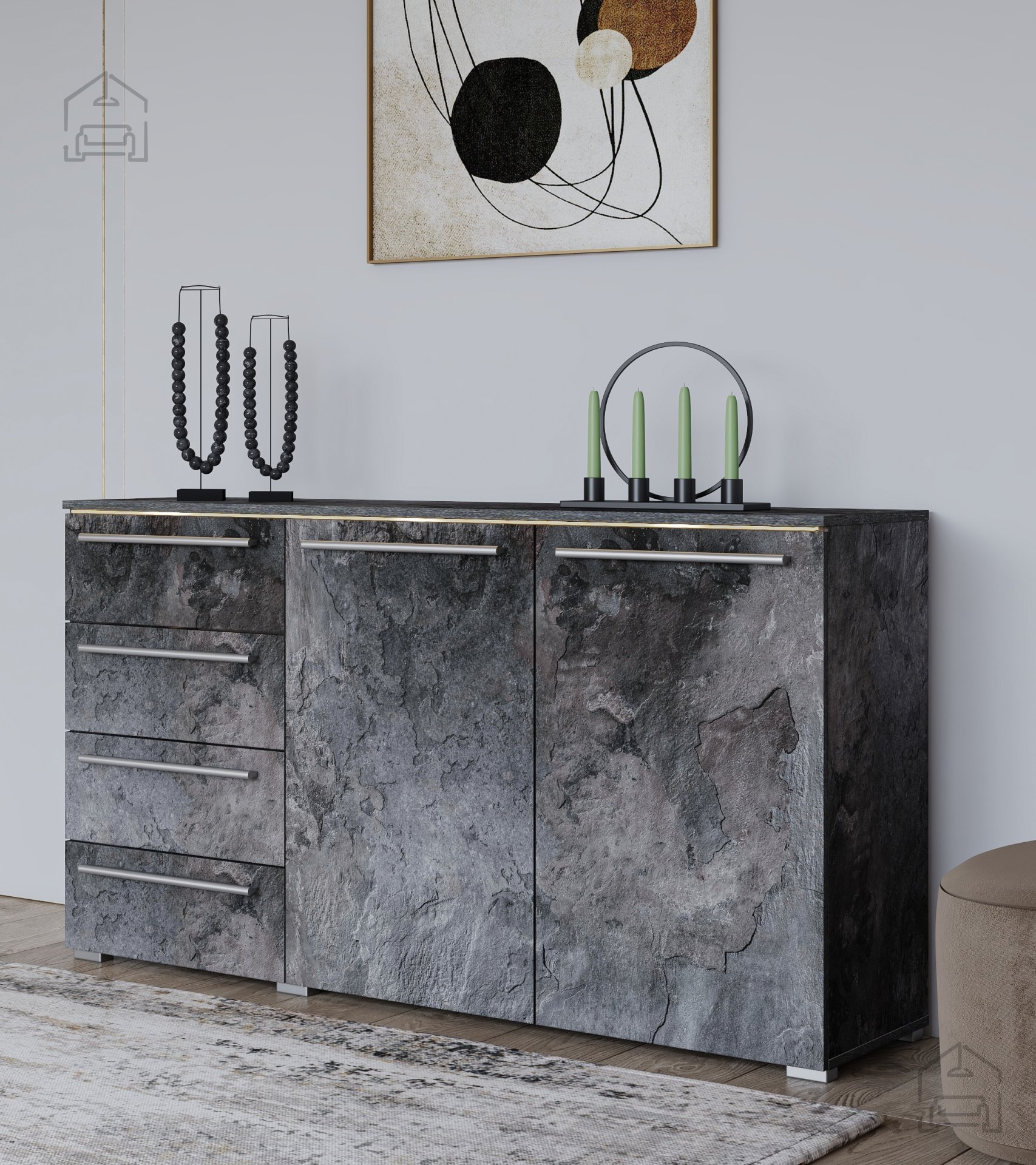 - Ästhetisches Design: Der edle Grauton und die klaren Linien machen diese Kommode perfekt für moderne und klassische Innenräume.