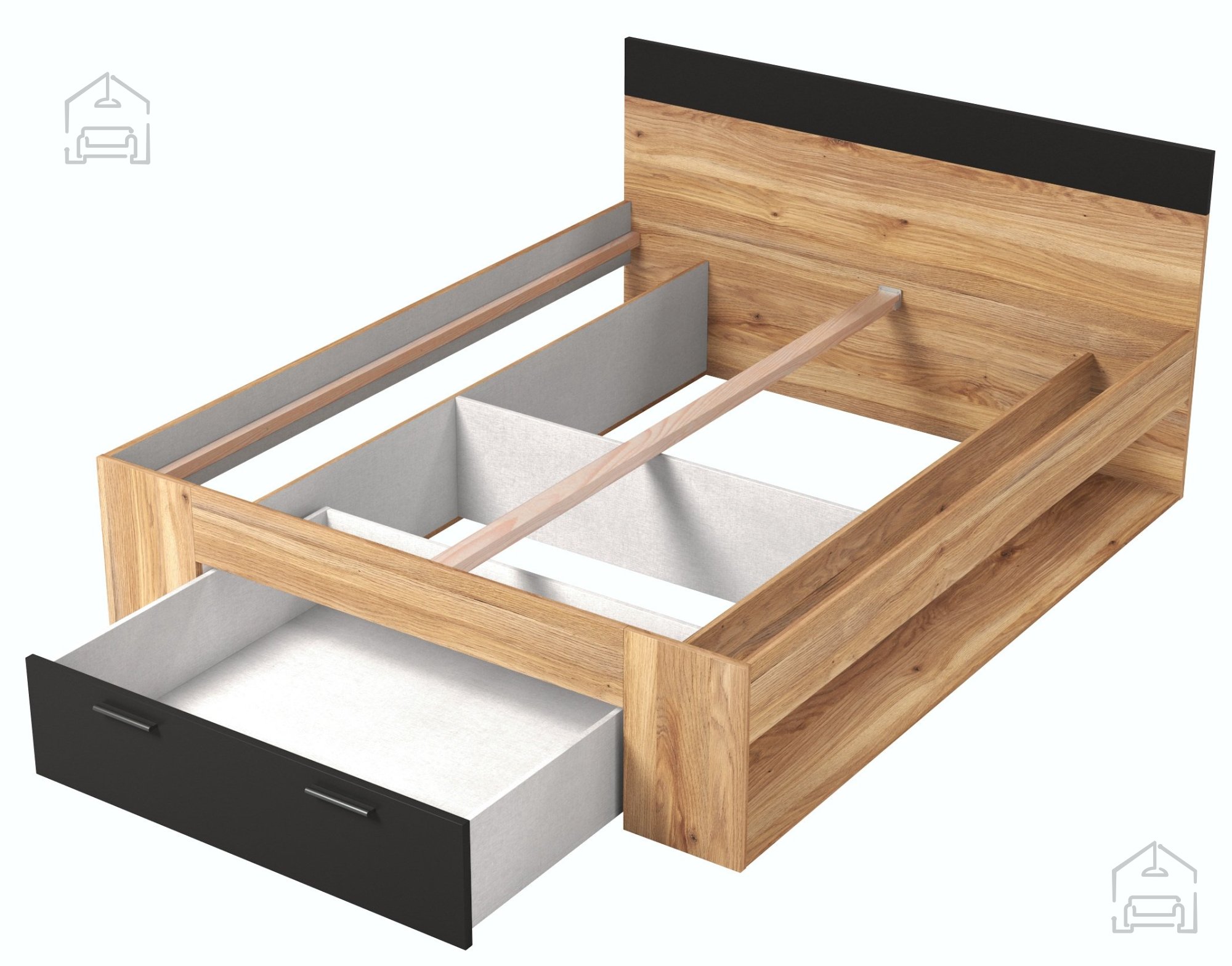 - Praktische Funktionalität: Dank der großen Bettwäsche-Schublade haben Sie immer genügend Stauraum – besonders nützlich für kleinere Schlafzimmer, in denen jeder Zentimeter zählt.