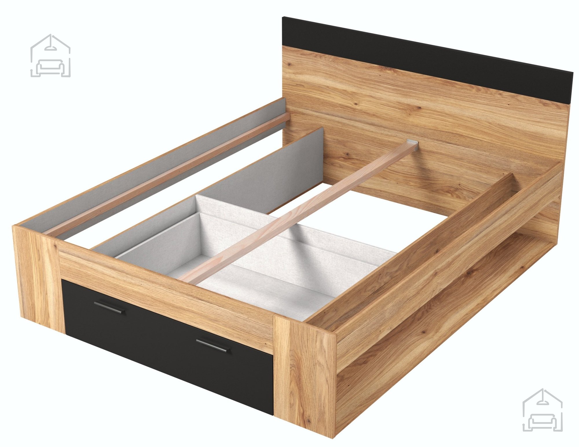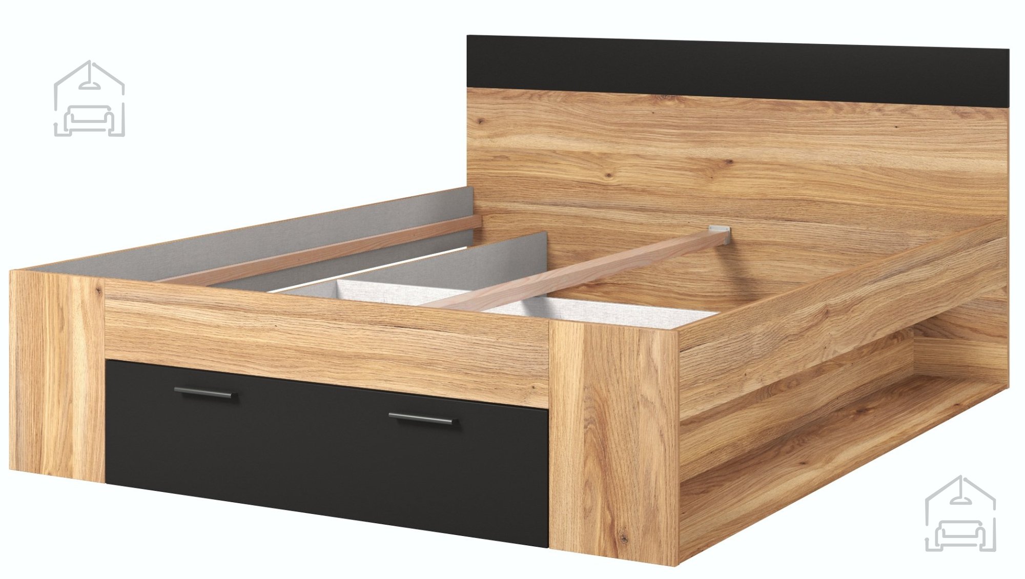 Bett Beta - 160x200 cm - Mauvella Eiche/Schwarz: Eleganz und Funktionalität in Ihrem Schlafzimmer