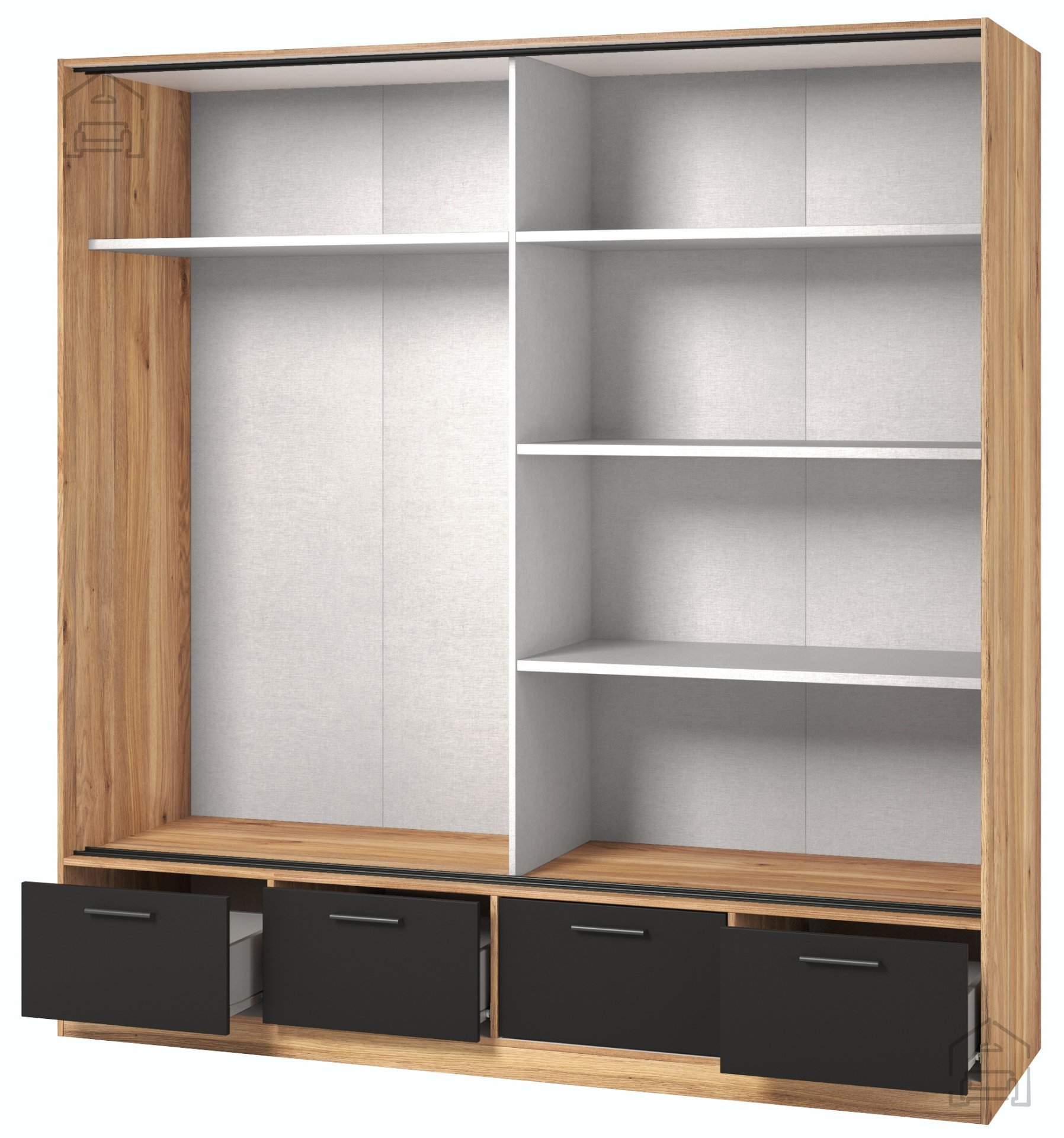Investieren Sie in den Kleiderschrank mit Schiebetüren Beta 2 und genießen Sie die Praktikabilität und Schönheit, die er in Ihr tägliches Leben bringt. Dieses Möbelstück ist mehr als nur ein Schrank; es ist ein Statement für Stil und Funktionalität, das zu einem unverzichtbaren Teil Ihres Zuhauses wird.