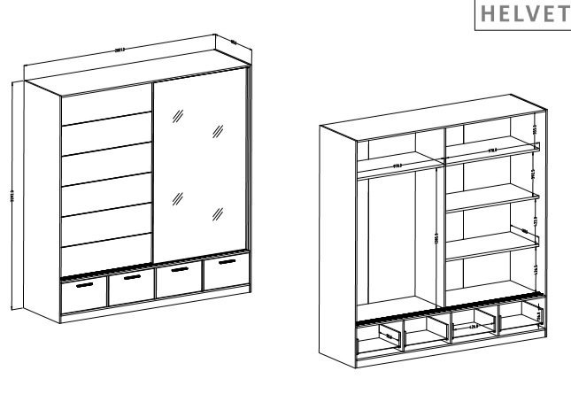Hergestellt in der renommierten Fabrik Helvetia meble in Polen, garantiert dieser Schrank europäische Qualität und Präzision in der Fertigung. Wenn Sie ein Möbelstück suchen, das Ihrem Zuhause Wert, Eleganz und Funktionalität verleiht, ist der Kleiderschrank Beta 2 die richtige Wahl für Sie.