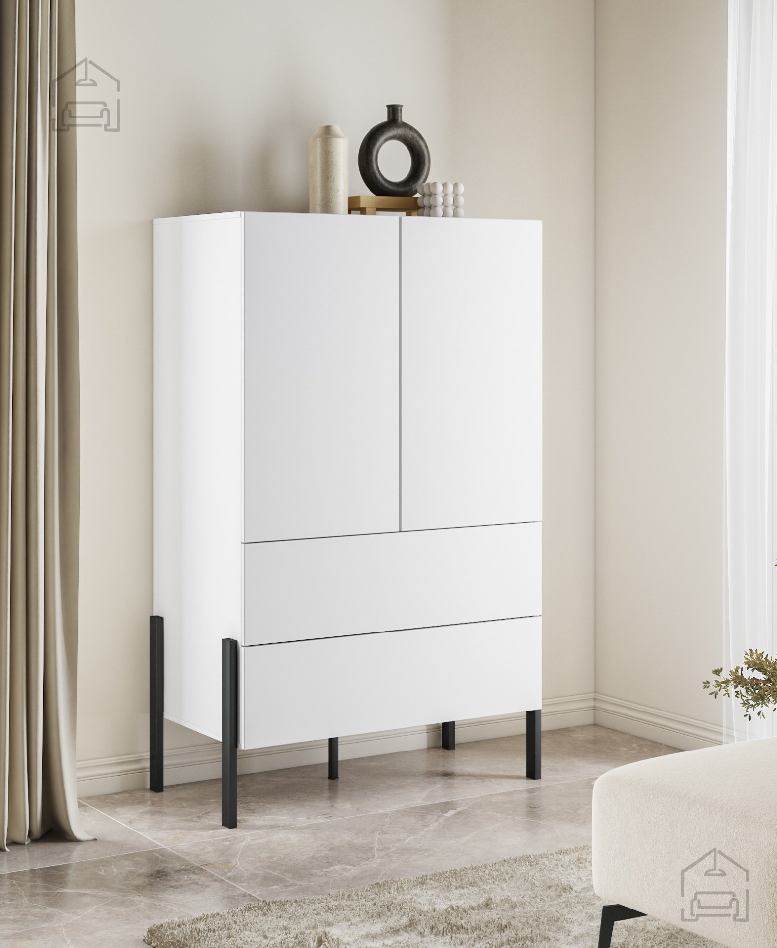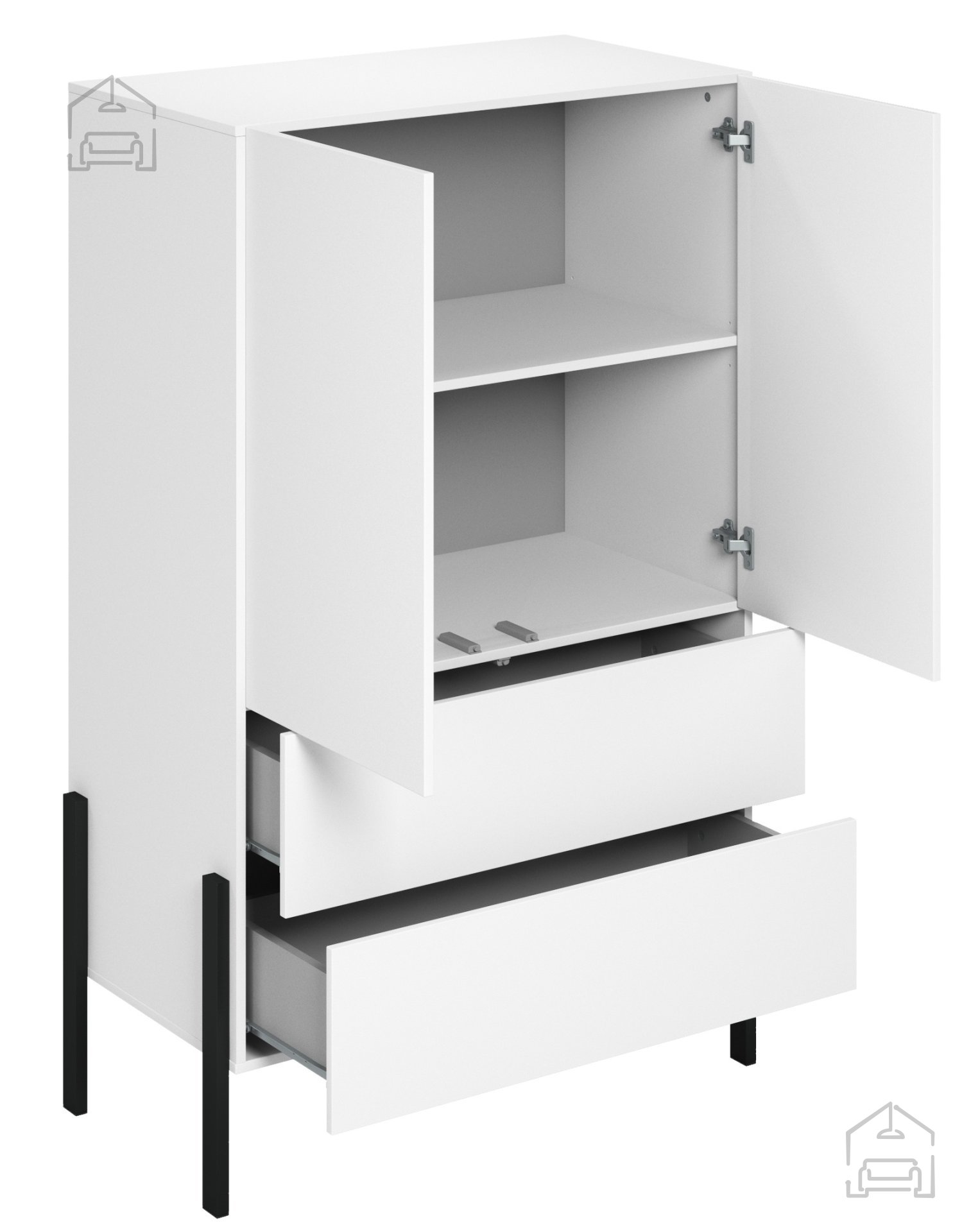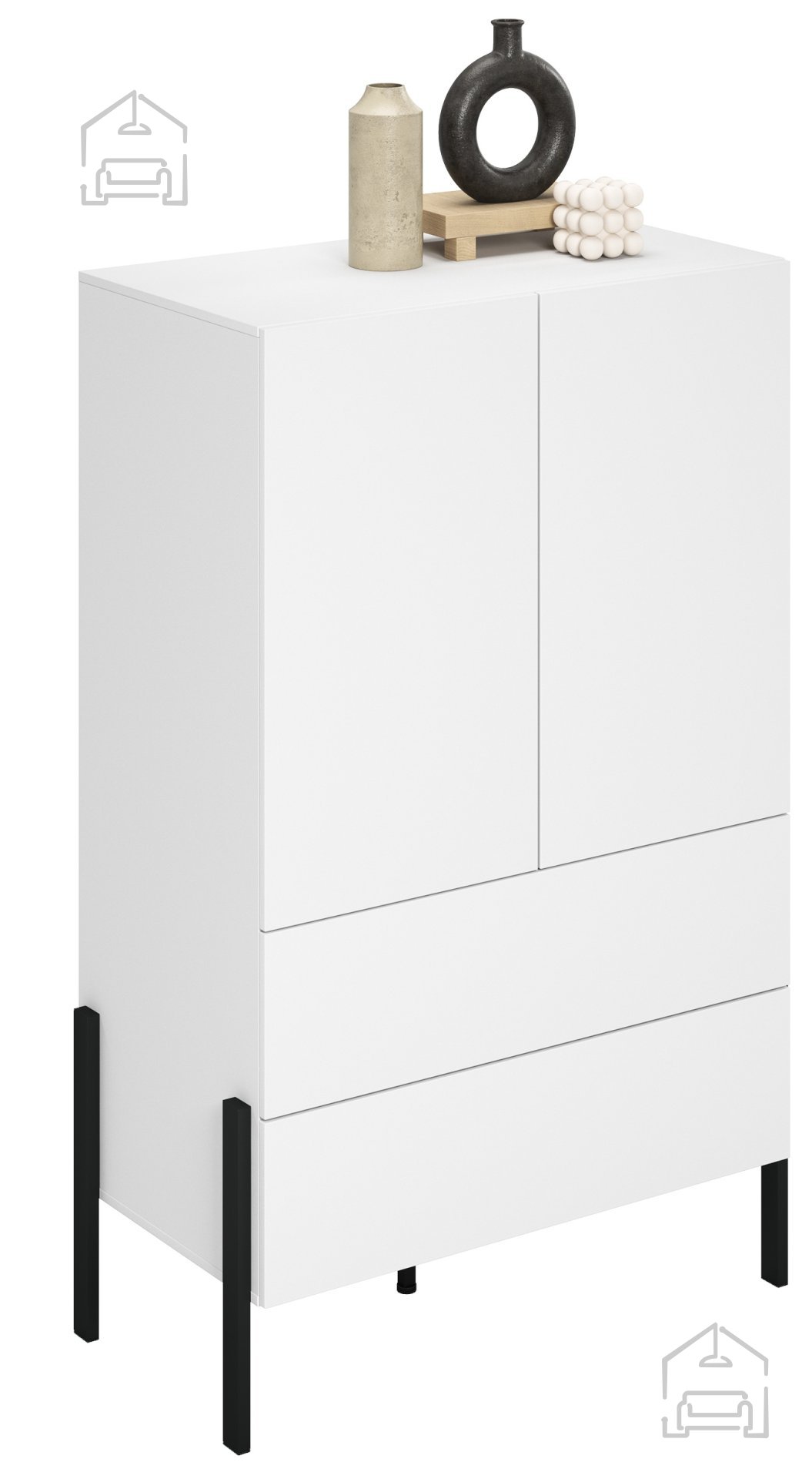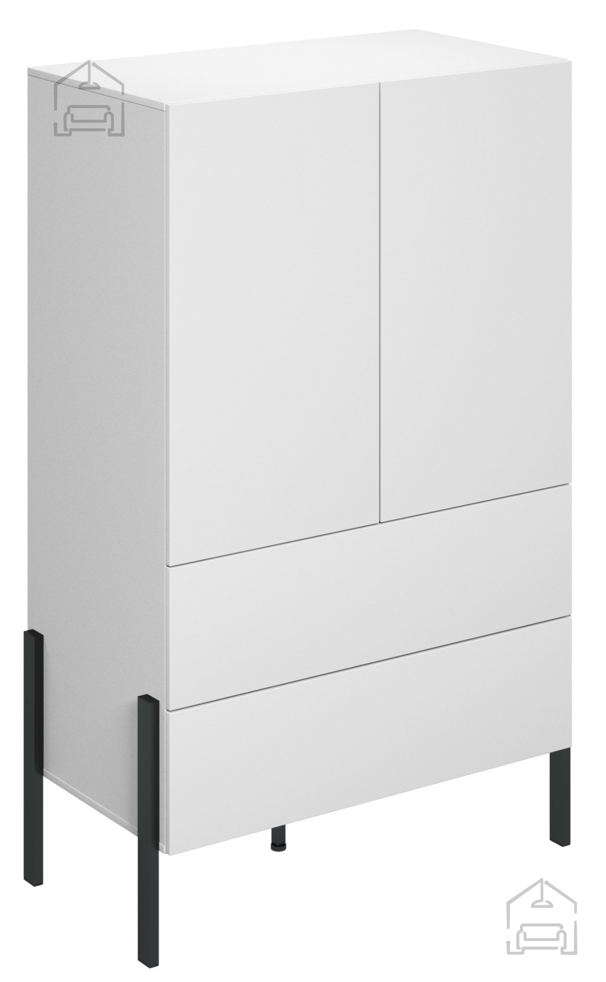 Ihre neutrale weiße Farbe ergänzt mühelos jedes Farbspektrum in Ihrem Zuhause. Darüber hinaus verleiht ihr modernes Design mit eleganten schwarzen Beinen genau den Hauch von Modernität und Raffinesse, den Sie suchen. Die Kommode Jukon S ist nicht nur praktisch, sondern auch äußerst attraktiv und wird zweifellos zum zentralen Element Ihres Raumes.