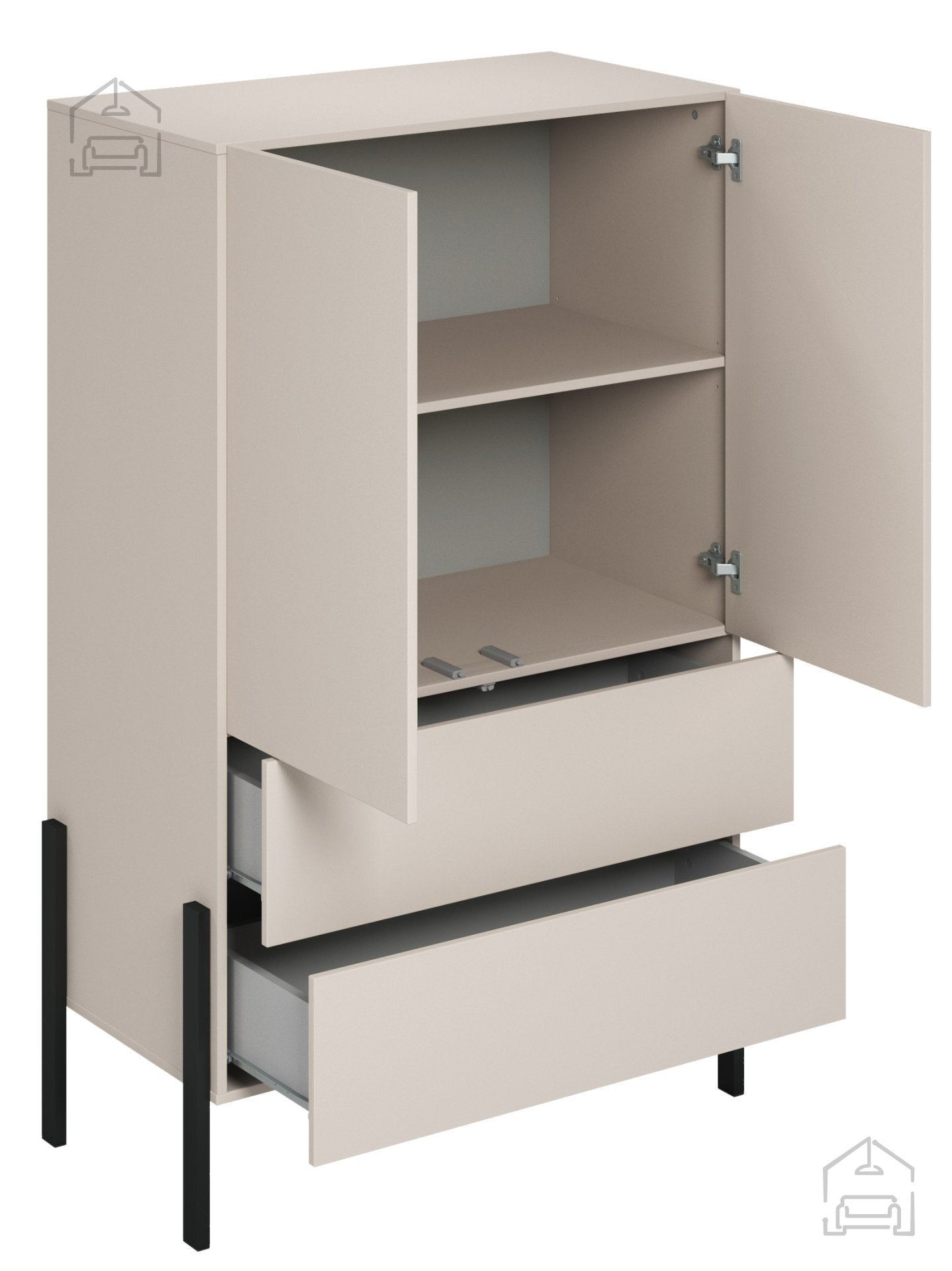 Bringen Sie einen Hauch von Eleganz und Funktionalität in Ihr Zuhause mit unserer außergewöhnlichen Kommode Jukon S. Diese hervorragend gestaltete Kommode, hergestellt in der renommierten Fabrik Helvetia meble in Polen, vereint moderne Ästhetik mit höchster Funktionalität und bereichert jeden Raum Ihres Heims. Mit ihrer raffinierten Farbe Cashmere ist diese Kommode die perfekte Kombination aus Stauraum und Dekoration.