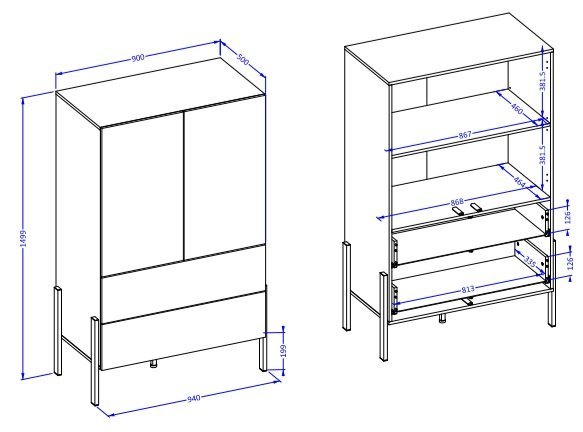 - Geräumige Organisation: Zwei Türen und zwei großzügige Schubladen bieten viel Platz für Ihre Utensilien, ohne den Stil Ihres Zuhauses zu beeinträchtigen.
