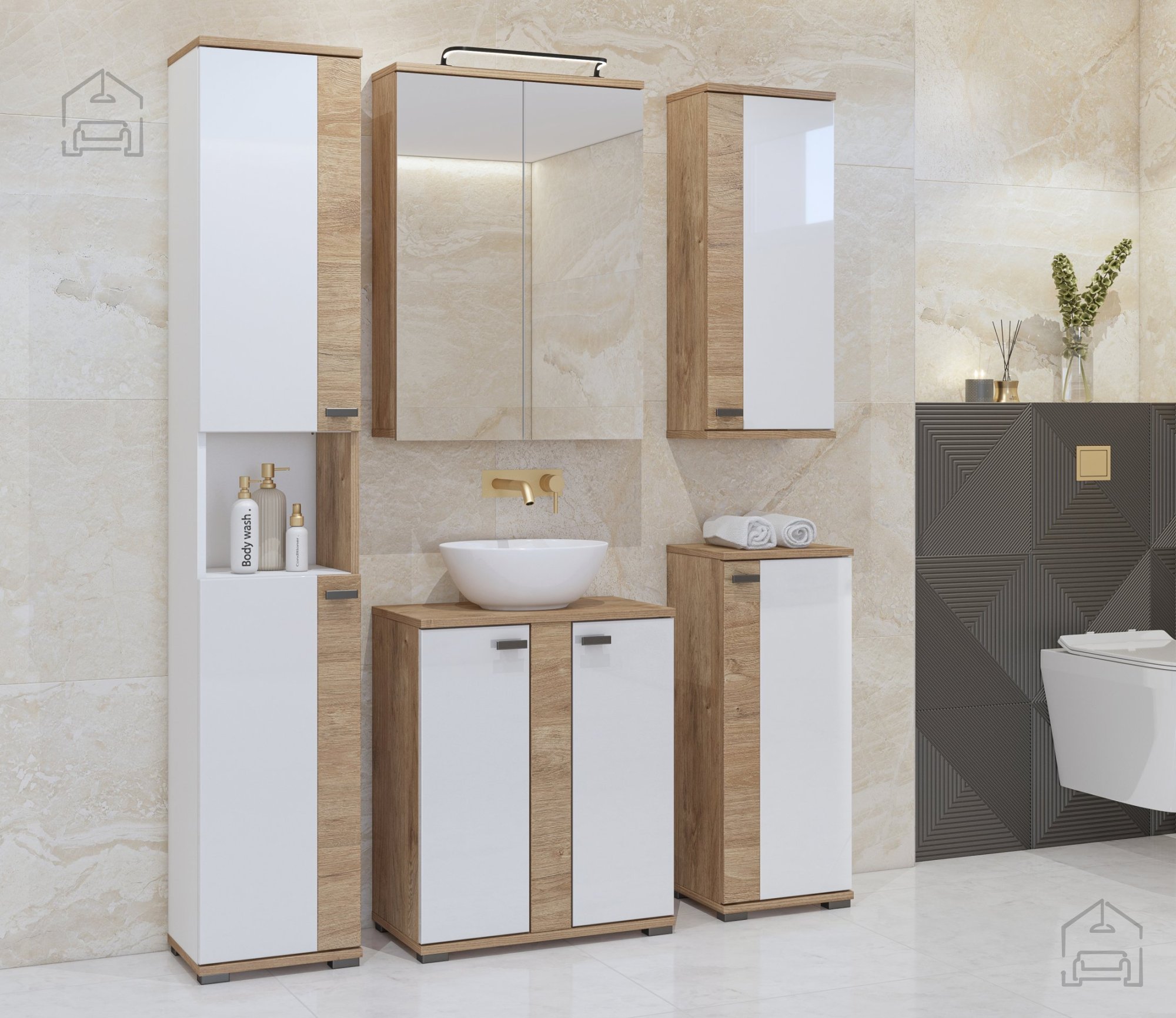 Verwandeln Sie Ihr Badezimmer mit der modernen und eleganten LED-Beleuchtung für das Badezimmer-Set Fargo, Irvine. Dieses Produkt, angeboten von Helvetia meble aus Polen, wurde entwickelt, um Ihr Badezimmerelebnis mit innovativer Technologie und ästhetischem Design zu verbessern.