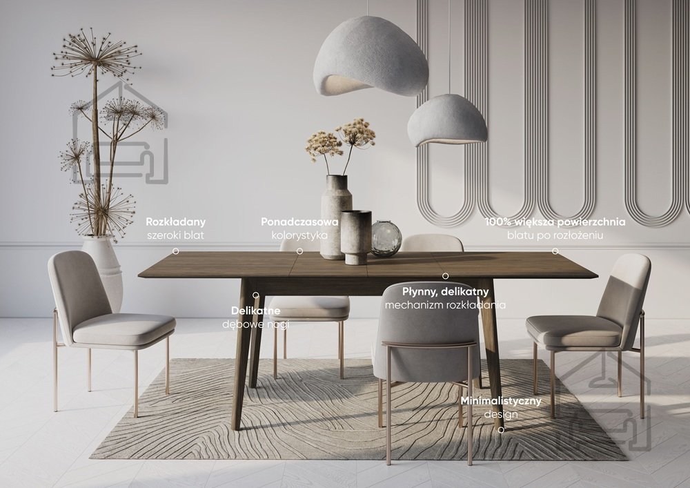 Der ausziehbare Tisch Plot PT-03 ist für diejenigen entworfen, die flexible Lösungen in ihrem Zuhause schätzen. Im Alltag ist er in kompakter Form perfekt für kleinere Räume geeignet, doch wenn Sie mehr Fläche benötigen, ist seine Ausziehfunktion einfach und schnell zu bedienen. Das bedeutet, dass Sie immer auf unerwartete Gäste oder größere Familienfeste vorbereitet sind.