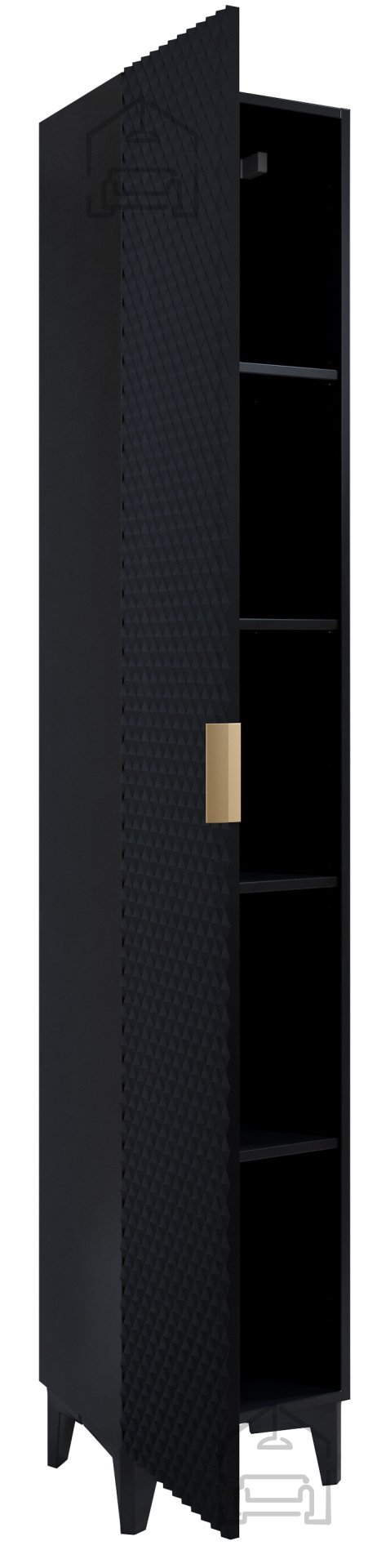 Die Maße des Produkts betragen 35x35x186 cm, was bedeutet, dass der Schrank Laura sowohl in kleineren als auch größeren Räumen problemlos seinen Platz findet. Der Korpus besteht aus hochwertiger, laminierter Spanplatte, die außergewöhnliche Stabilität und eine lange Lebensdauer gewährleistet. Die Fronten sind aus MDF gefertigt, was dem Schrank ein edles Aussehen verleiht und seine Widerstandsfähigkeit gegen täglichen Gebrauch erhöht. Die schwarze Farbe des Schranks bringt einen Hauch von Eleganz und lässt sich mühelos mit verschiedenen Einrichtungsstilen kombinieren.
