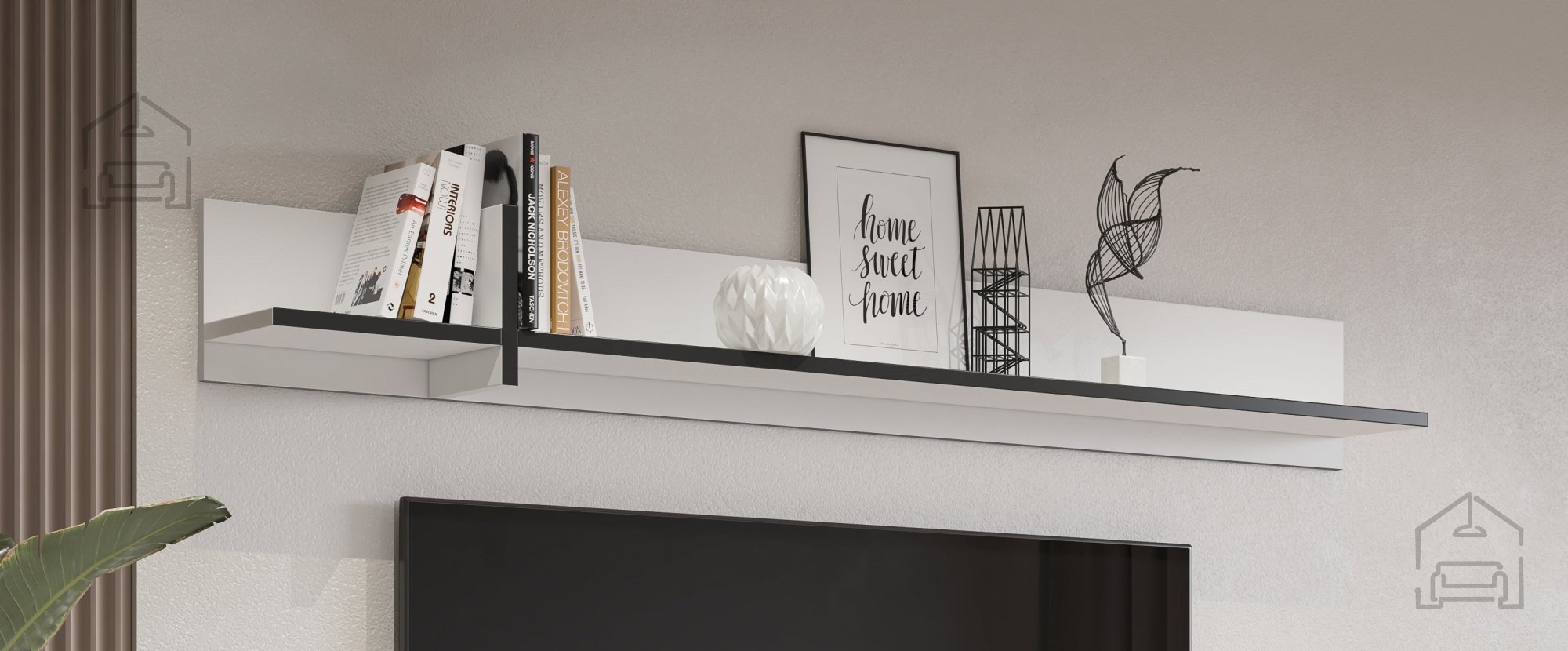 Das Regal ist in einer eleganten Kombination aus Weiß und Schwarz erhältlich, wodurch es sich nahtlos in verschiedene Einrichtungsstile einfügt. Egal, ob Ihr Zuhause modern, klassisch oder minimalistisch eingerichtet ist – das Wandregal Cross verleiht jedem Raum einen Hauch von Eleganz und Raffinesse.