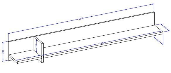 Das Wandregal misst 180x23x23 cm und bietet somit ausreichend Platz zur Aufbewahrung Ihrer Lieblingsbücher, Dekorationsgegenstände oder anderer Accessoires. Es besteht aus MDF-Material, das für seine Robustheit und lange Lebensdauer bekannt ist. MDF ist eine ausgezeichnete Wahl für Möbel, da es Stabilität und Widerstandsfähigkeit gegenüber alltäglichen Belastungen gewährleistet.