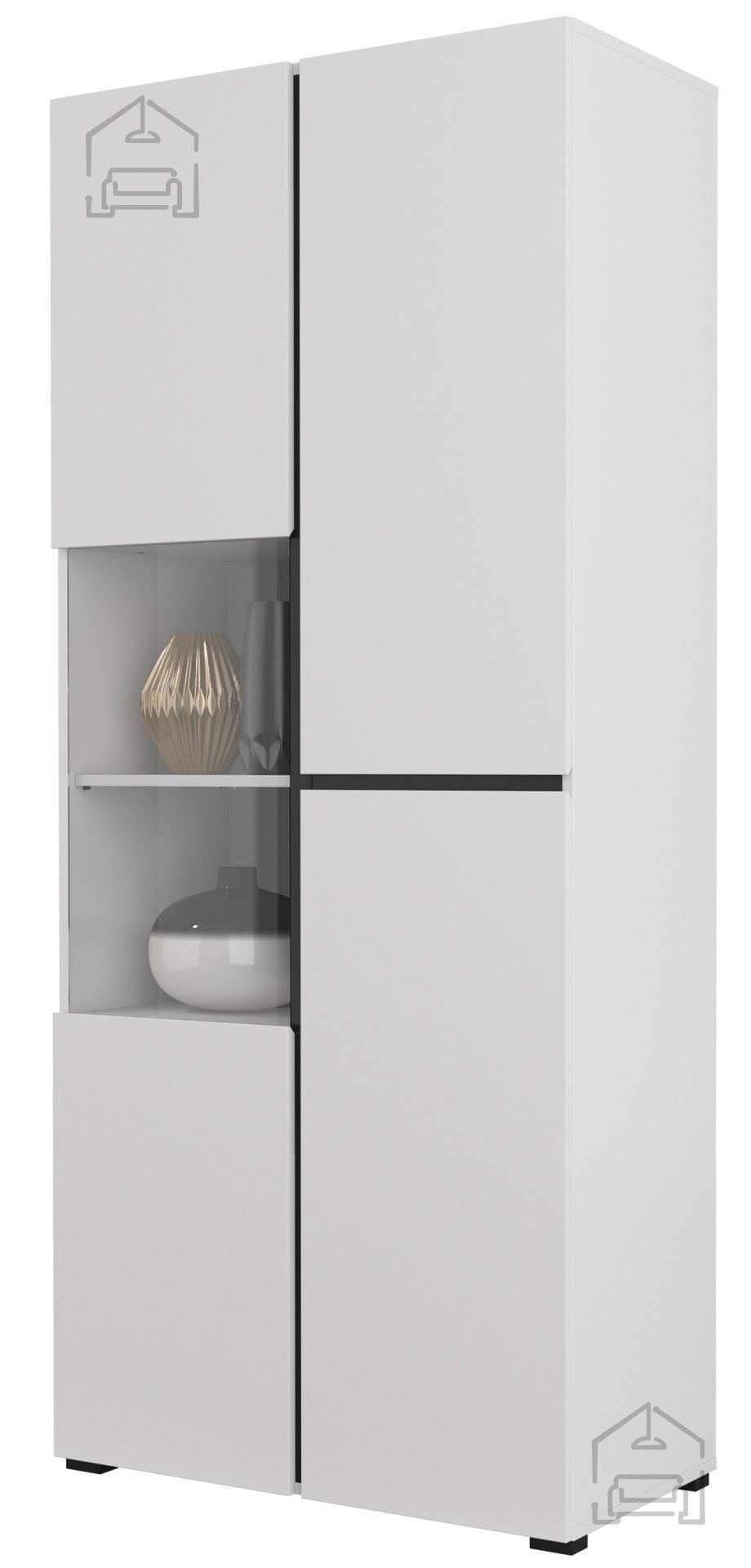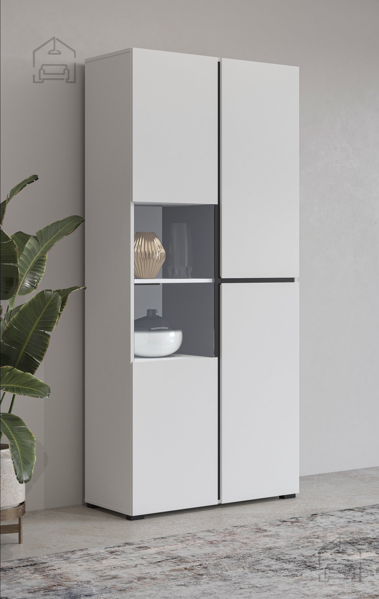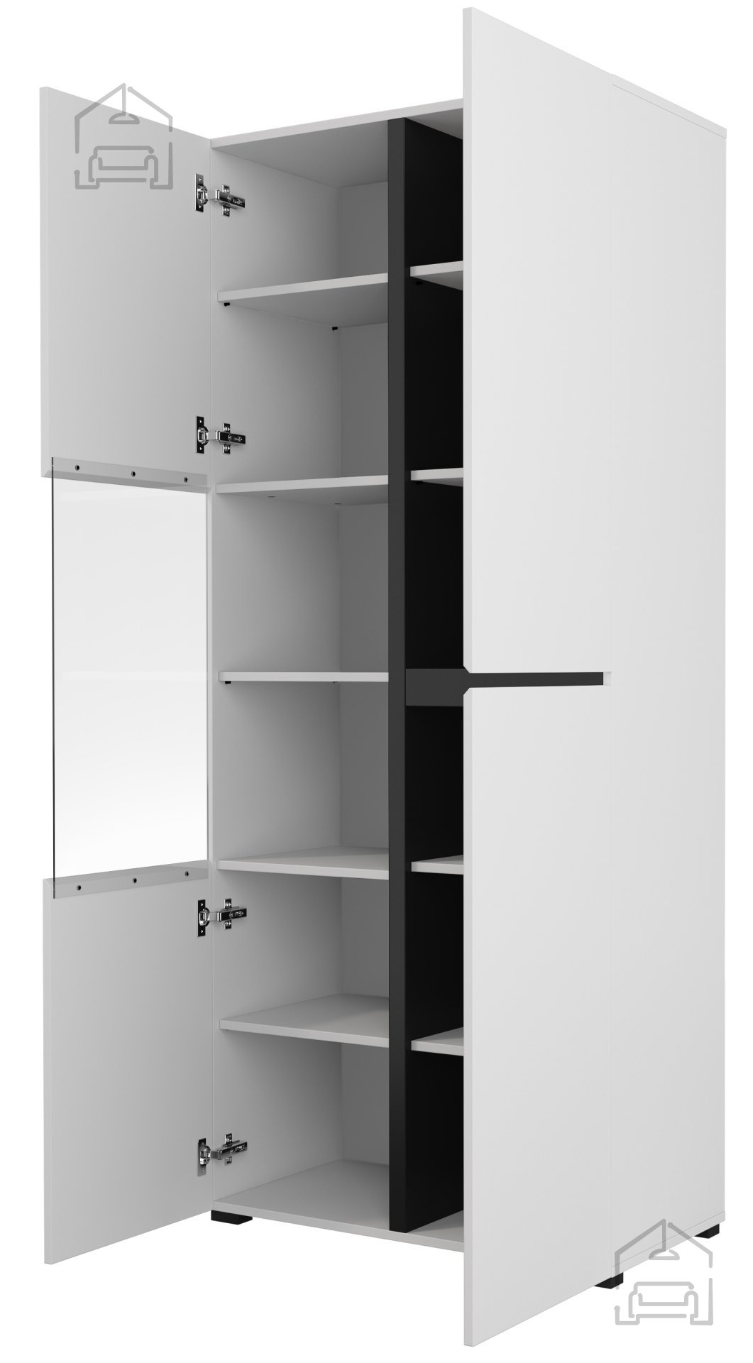 Die Vitrine Cross - Weiß/Weiß-Schwarz - 249WMY12 ist mehr als nur ein Möbelstück; sie ist ein Statement Ihres Geschmacks und Stils. Mit ihrem eleganten Design, dem robusten Material und der optionalen LED-Beleuchtung ist diese Vitrine die ideale Lösung für jedes Zuhause. Zögern Sie nicht länger und sichern Sie sich dieses einzigartige Stück, das Ihrem Raum einen Hauch von Luxus und Eleganz verleiht. Ihre Inneneinrichtung verdient nur das Beste – und die Vitrine Cross ist genau das.
