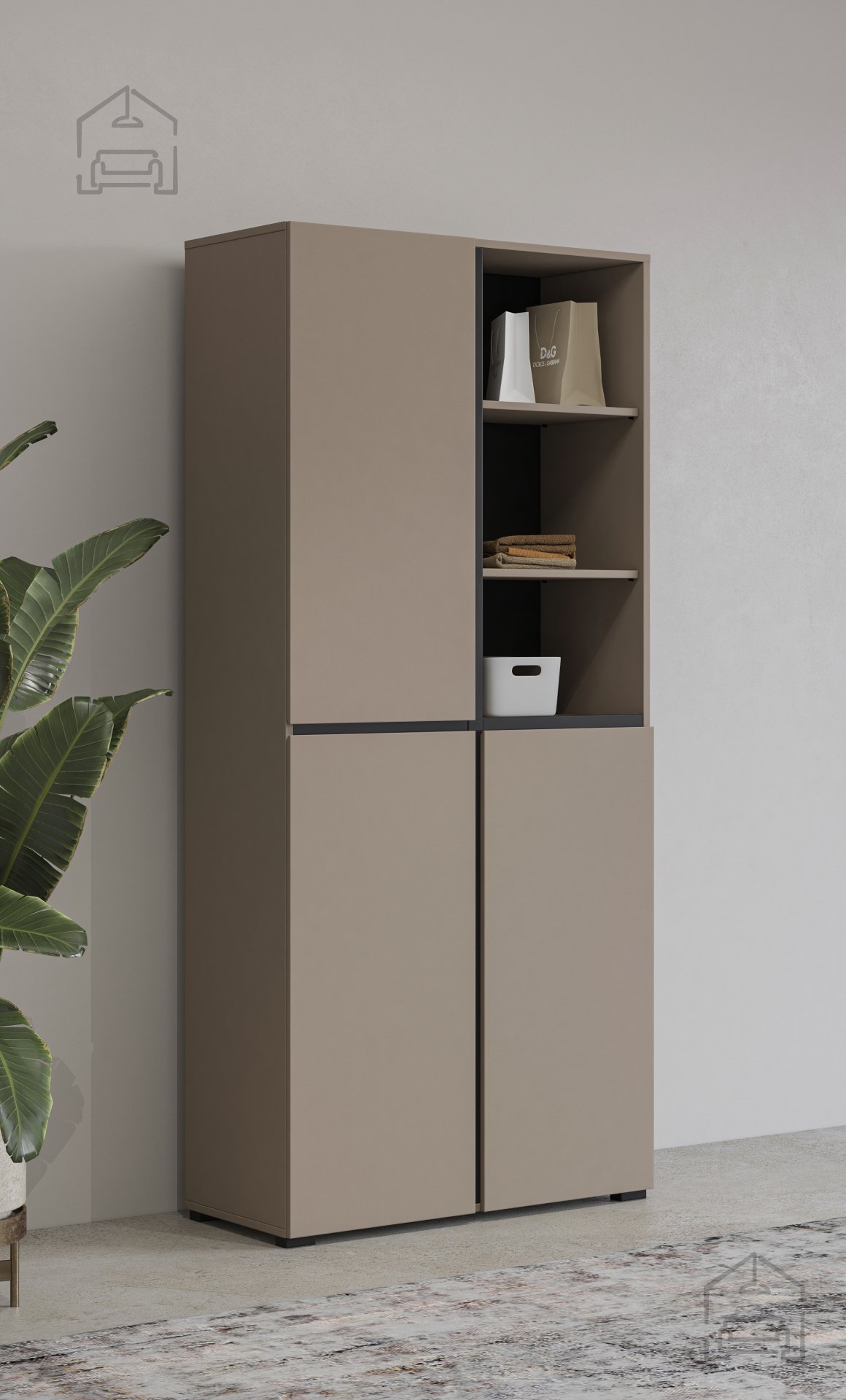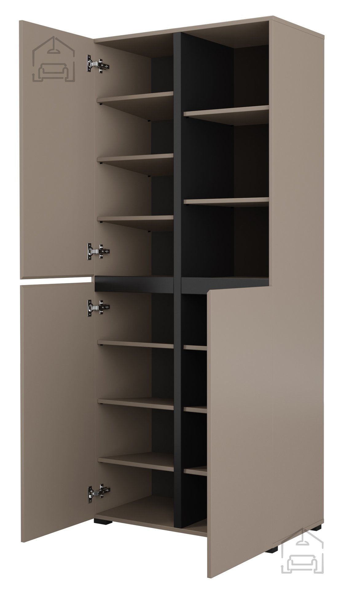 Farbe und Design: Die Kombination aus Kongo und Kongo-Schwarz verleiht ein anspruchsvolles und trendiges Aussehen, das sich mühelos mit verschiedenen Einrichtungsstilen kombinieren lässt. Der Schrank Cross besticht durch elegante Linien und ein zeitloses Design, das jeden Raum aufwertet – egal, ob Sie ihn im Wohnzimmer, Schlafzimmer oder Büro platzieren.
