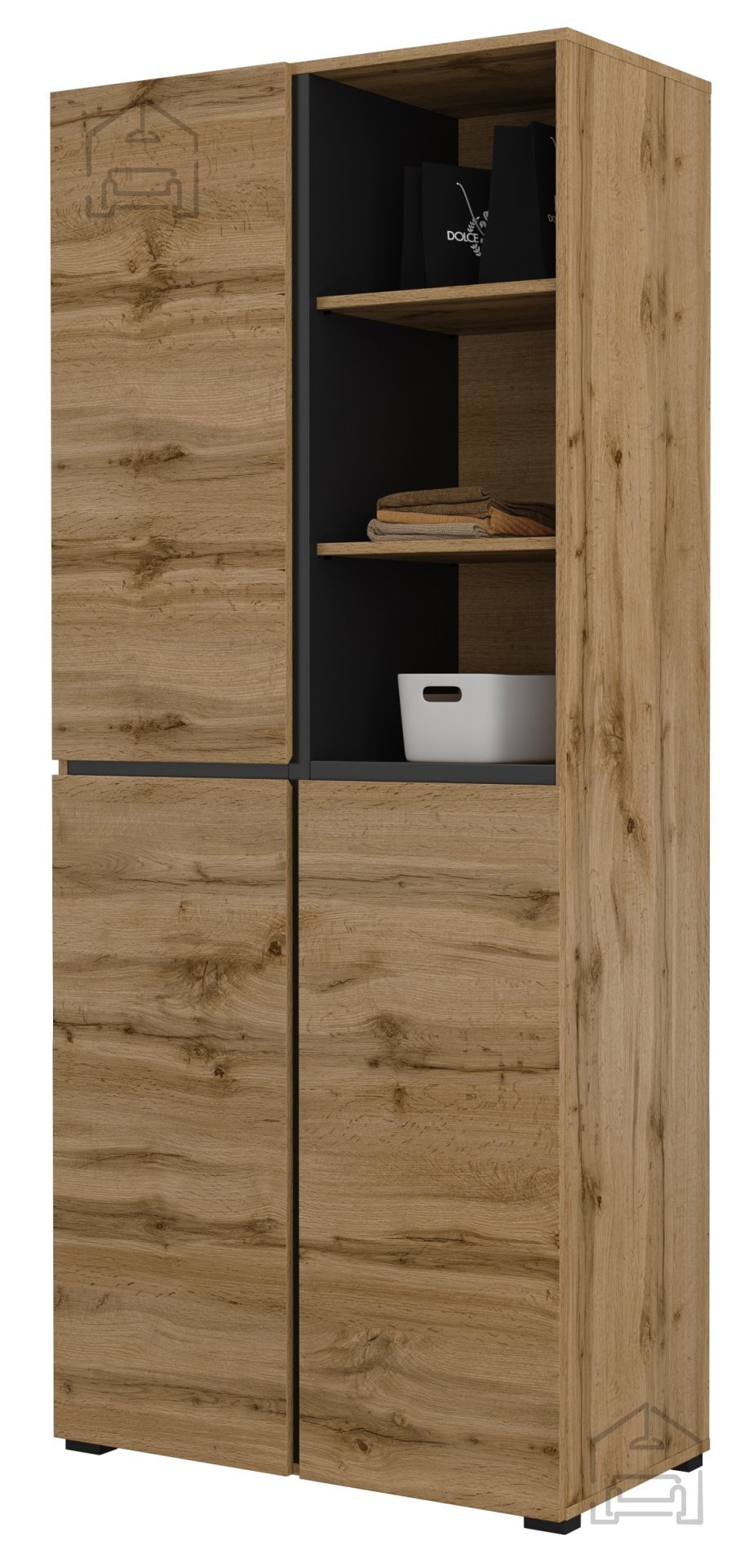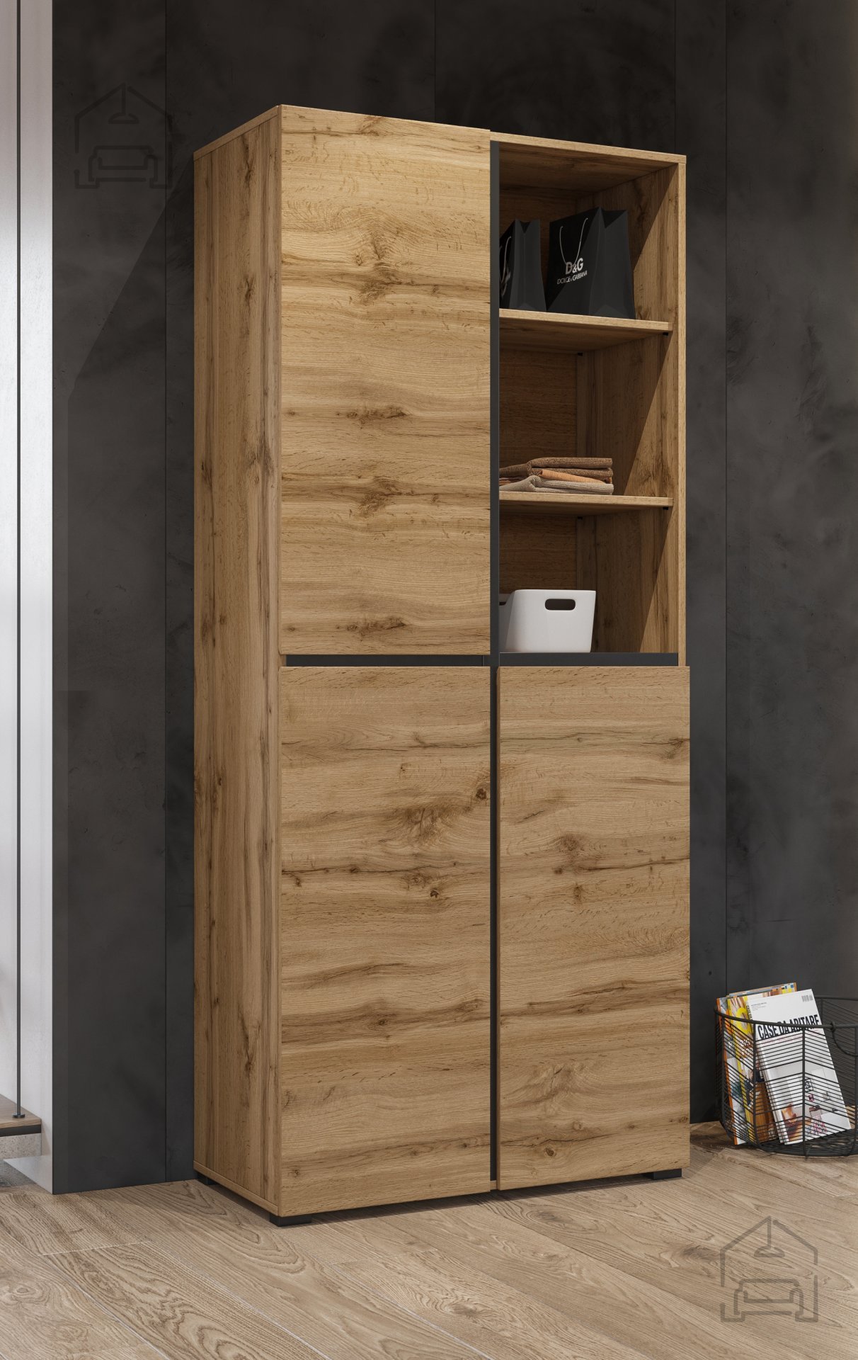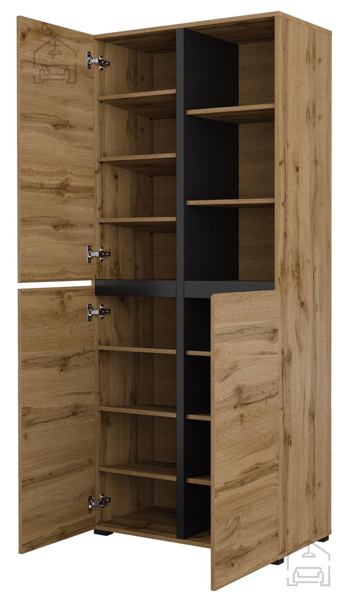 Der Schrank Cross - Votan/Votan-Schwarz ist mehr als nur ein Schrank; er vereint Stil, Funktionalität und Qualität in einem. Mit seinem eleganten Design und seiner praktischen Gestaltung ist er die perfekte Wahl für alle, die Organisation und Ästhetik in ihrem Zuhause verbessern möchten. Verpassen Sie nicht die Gelegenheit, Ihr Zuhause mit diesem außergewöhnlichen Möbelstück von Helvetia Meble zu bereichern.