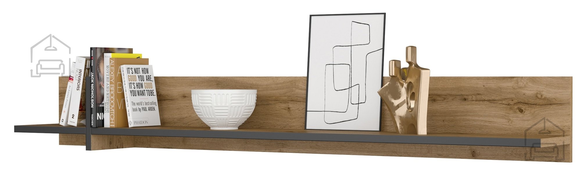 Das Wandregal Cross misst 180x23x23 cm und bietet damit ausreichend Platz für Bücher, Dekorationsobjekte oder Familienfotos. Es besteht aus hochwertigem MDF-Material, das Stabilität und Langlebigkeit garantiert. MDF ist bekannt für seine Widerstandsfähigkeit gegen Feuchtigkeit und Temperaturschwankungen, was bedeutet, dass das Regal über die Jahre hinweg sein schönes Aussehen behält.