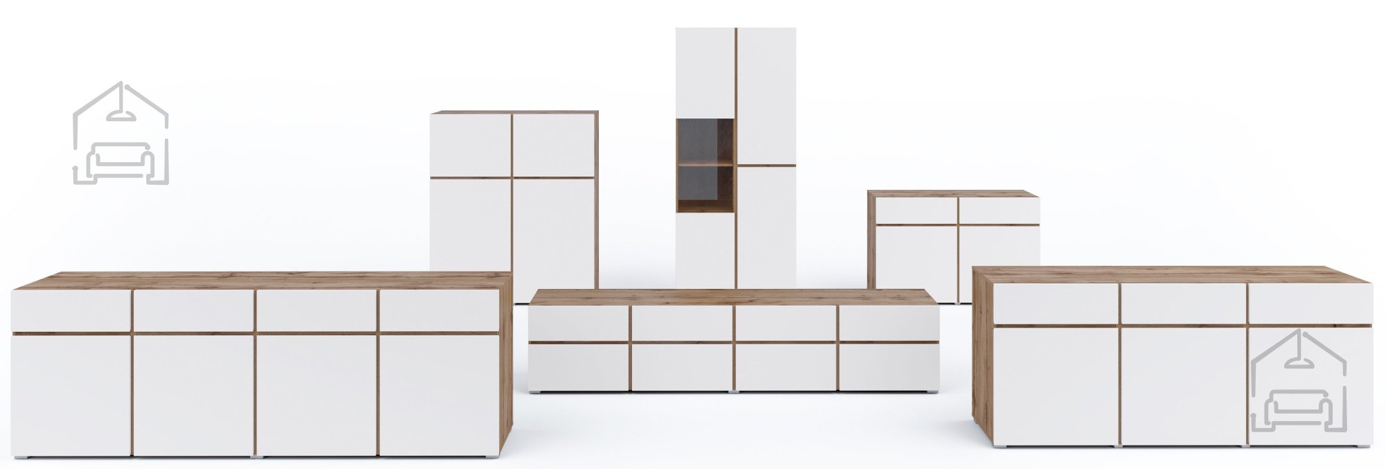- Elegante Farbkombination: Die Kombination aus Eiche Votan und Weiß verleiht eine moderne Ästhetik, die sich leicht an verschiedene Einrichtungsstile anpasst. Ob Sie einen minimalistischen, skandinavischen oder klassischen Stil bevorzugen – das Wohnzimmer Cross ergänzt Ihre Vision perfekt.
