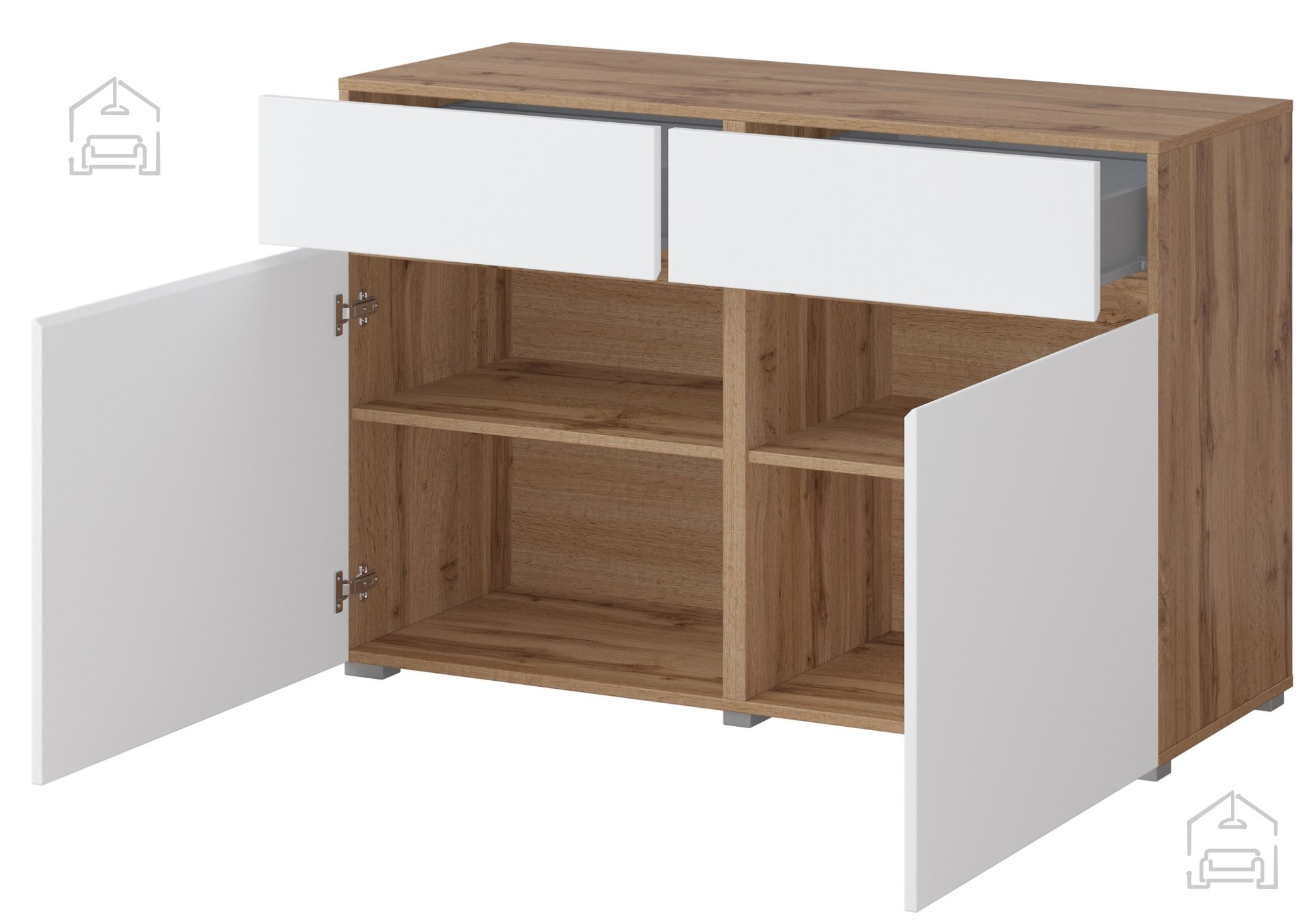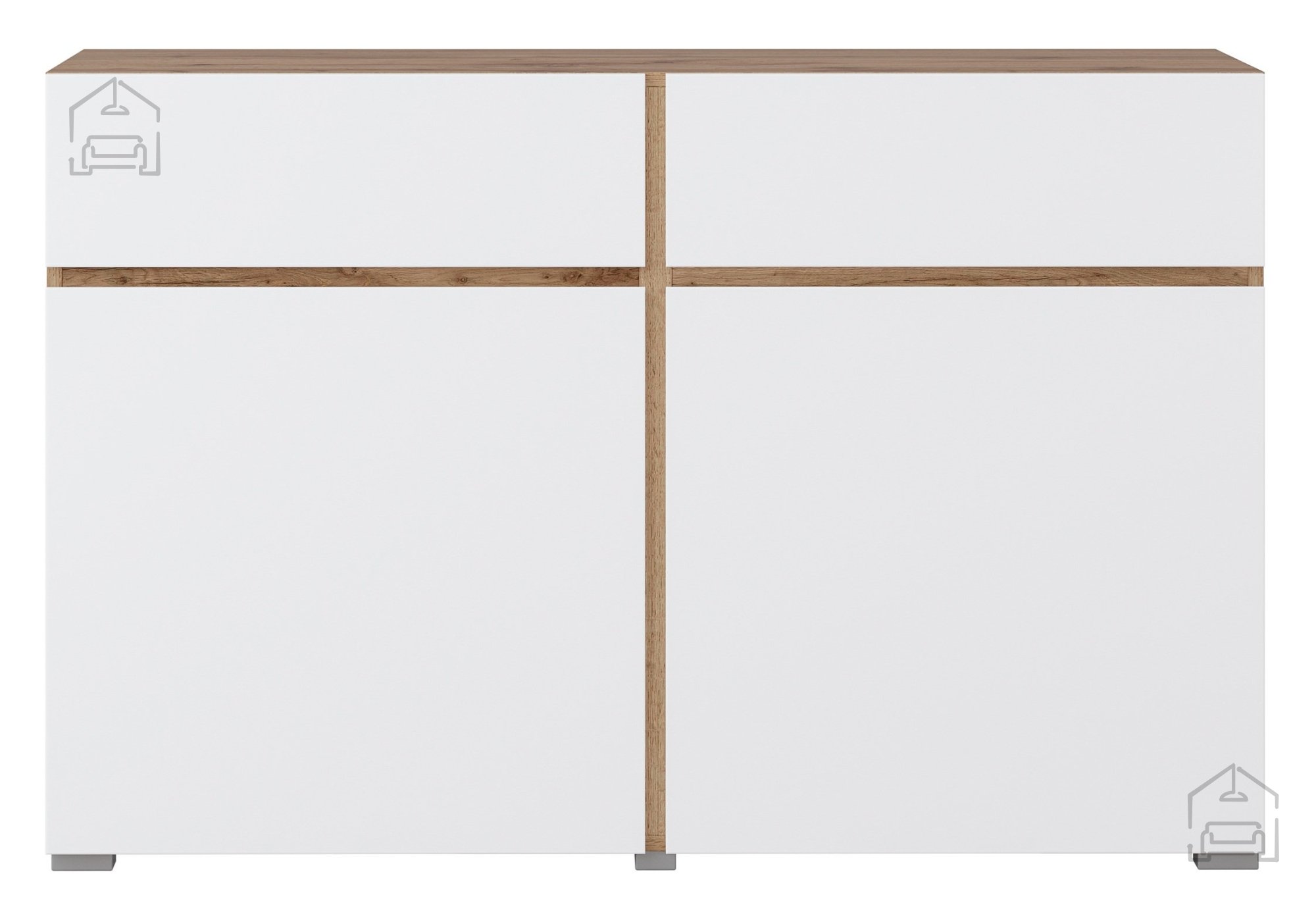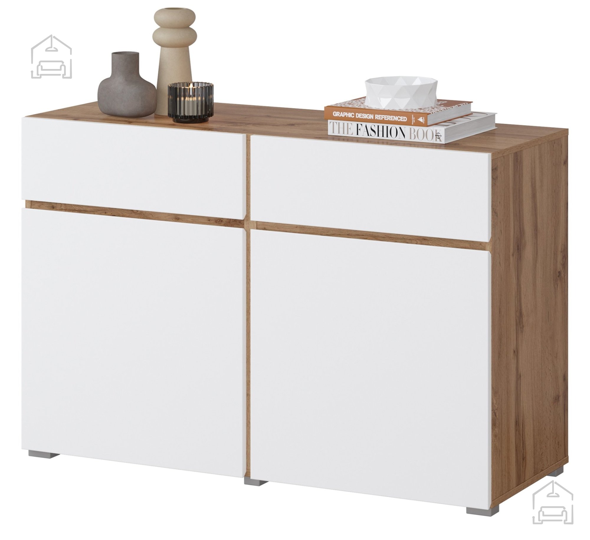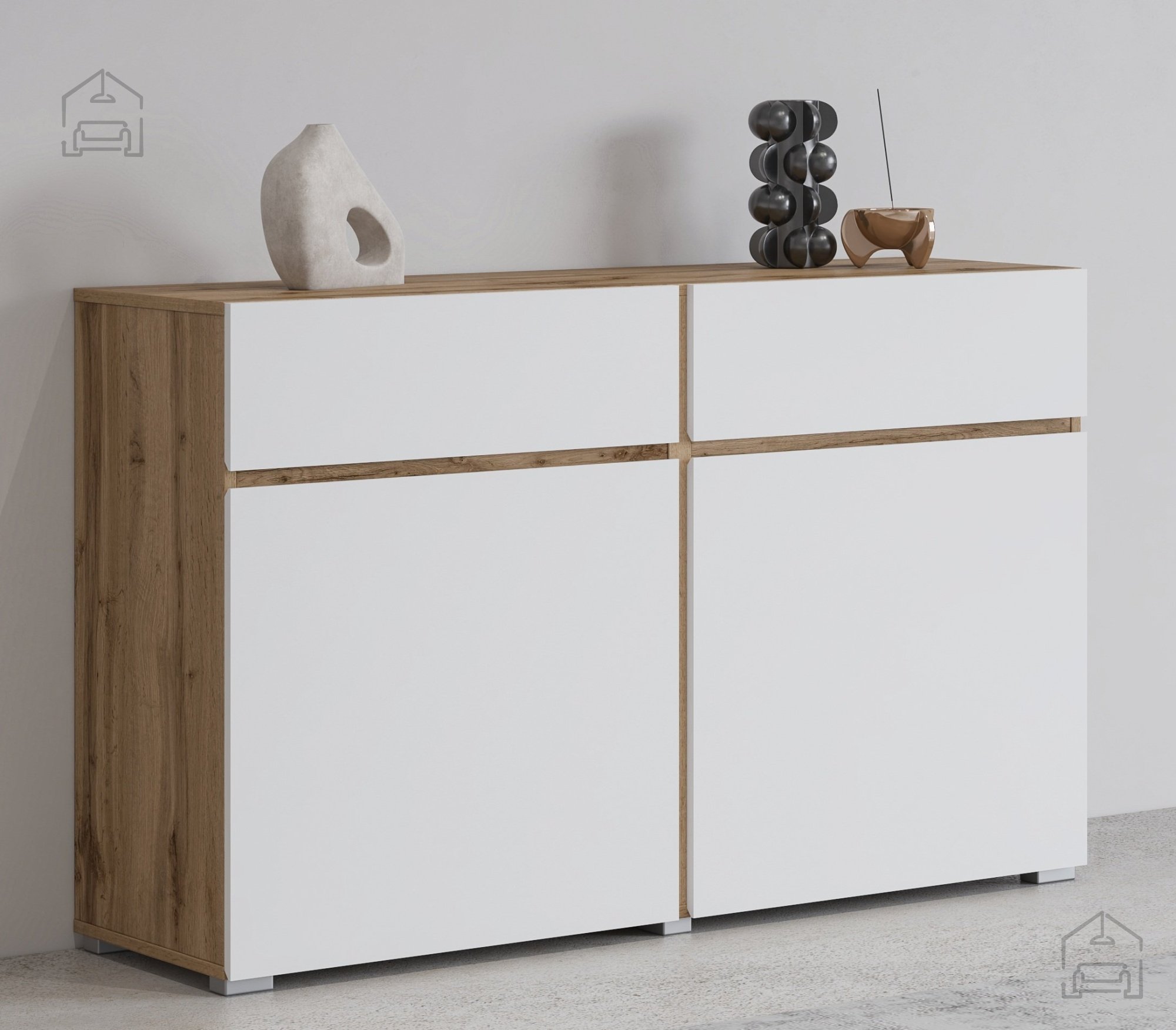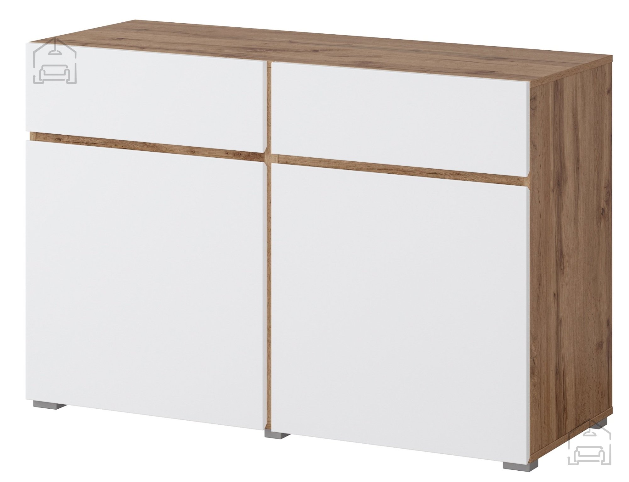 Wir präsentieren Ihnen die Kommode Cross - Eiche votan/weiß - 24N9MY45, die erstklassiges Design mit praktischer Nutzbarkeit verbindet. Dieses außergewöhnliche Möbelstück wird zum Mittelpunkt Ihres Wohnraums, da es moderne ästhetische Trends mit der unverzichtbaren Funktionalität in jedem Zuhause vereint. Durch die ausgewogene Kombination aus Votan-Eiche und Weiß bringt die Kommode Wärme und Frische in Ihr Heim.