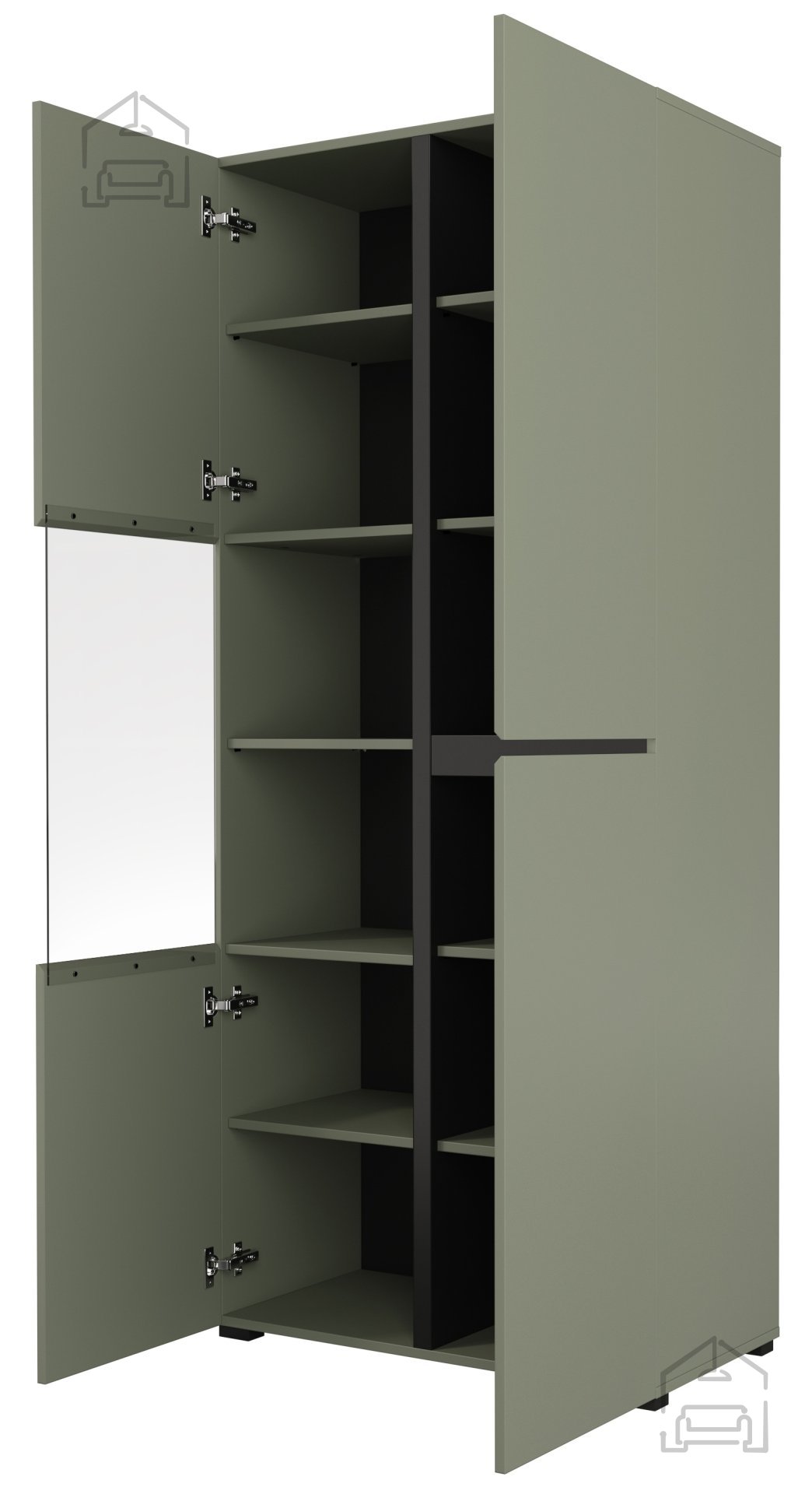 Die Vitrine Cross - grün/grün-schwarz - 24GWMY12 ist mehr als nur ein Möbelstück; sie ist ein Kunstwerk, das in Ihrem Zuhause einen beeindruckenden visuellen Effekt erzeugt. Mit ihren Maßen von 79x40x183 cm bietet sie genau das richtige Gleichgewicht zwischen Funktionalität und Ästhetik. Diese außergewöhnliche Vitrine ist aus hochwertigem MDF-Material gefertigt und vereint moderne Eleganz mit zeitloser Praktikabilität. Die Farbkombination aus Grün und Grün-Schwarz bringt Frische und Modernität, wodurch sie die ideale Wahl für alle ist, die ihrem Zuhause einen Hauch zeitgenössischer Kunst verleihen möchten.