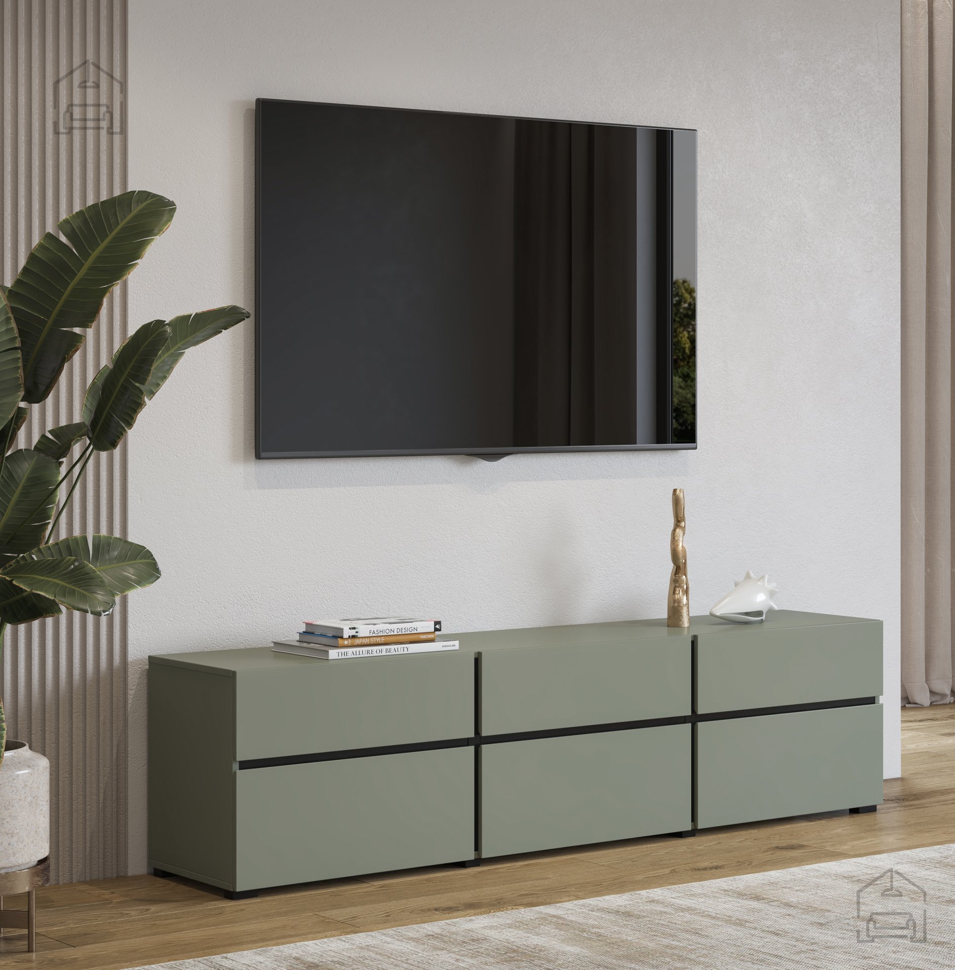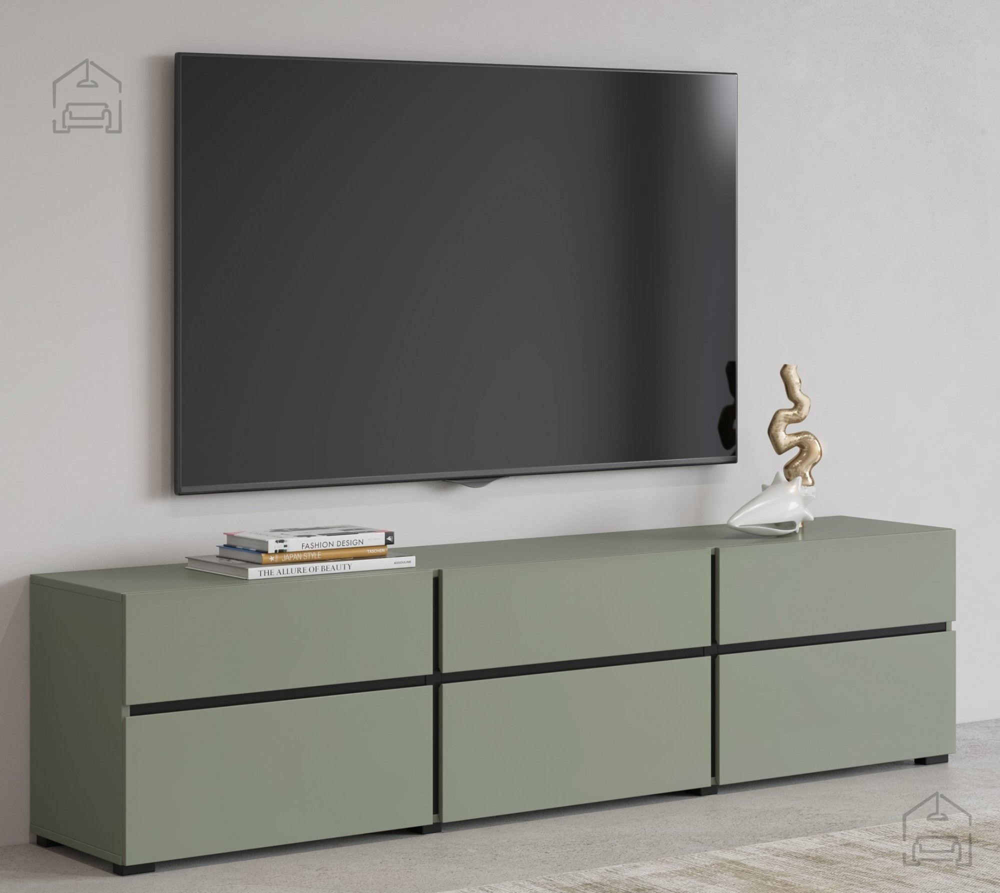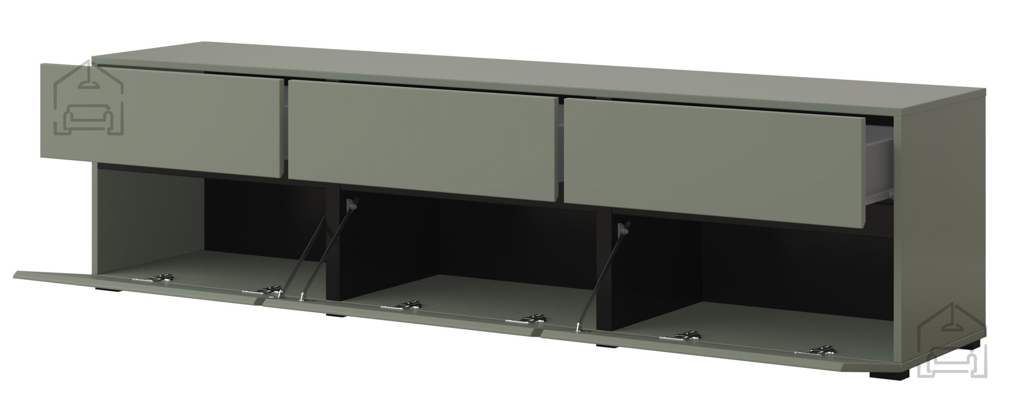 Das TV-Sideboard Cross - grün/grün-schwarz - 24GWMY41 ist mehr als nur ein Möbelstück; es ist ein Ausdruck Ihres Stils und Geschmacks. Mit seiner Kombination aus Funktionalität, Langlebigkeit und Modernität ist es die perfekte Wahl für alle, die ihren Wohnraum aufwerten möchten. Vertrauen Sie auf die Qualität und das Design von Helvetia meble und genießen Sie die zeitlose Eleganz Ihres neuen TV-Sideboards.