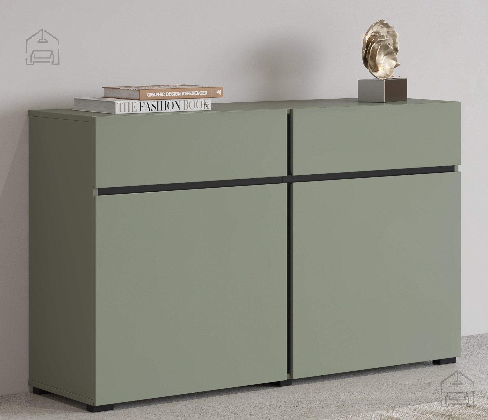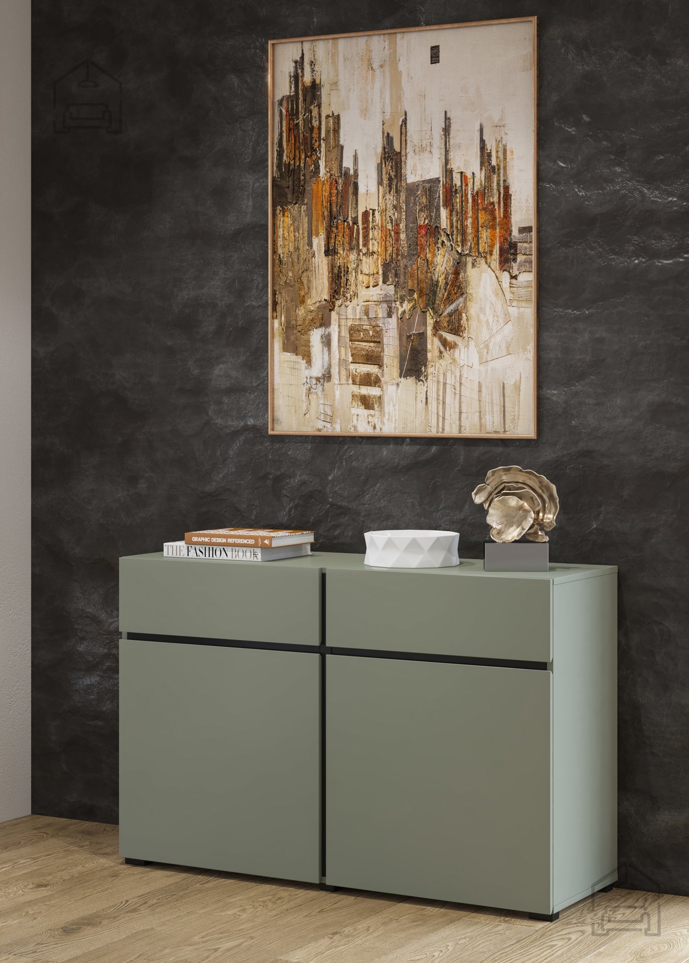 Mit ihrem einzigartigen Farbdesign, das Grün und Grün-Schwarz kombiniert, bringt die Kommode ein Gefühl von Ruhe und Modernität in den Raum. Die grüne Farbe symbolisiert Natur und Frische, während die grün-schwarze Kombination einen Hauch von Modernität und Raffinesse hinzufügt. Diese Farbpalette lässt sich leicht mit verschiedenen Einrichtungsstilen kombinieren und bietet somit viel kreative Freiheit bei der Raumgestaltung.