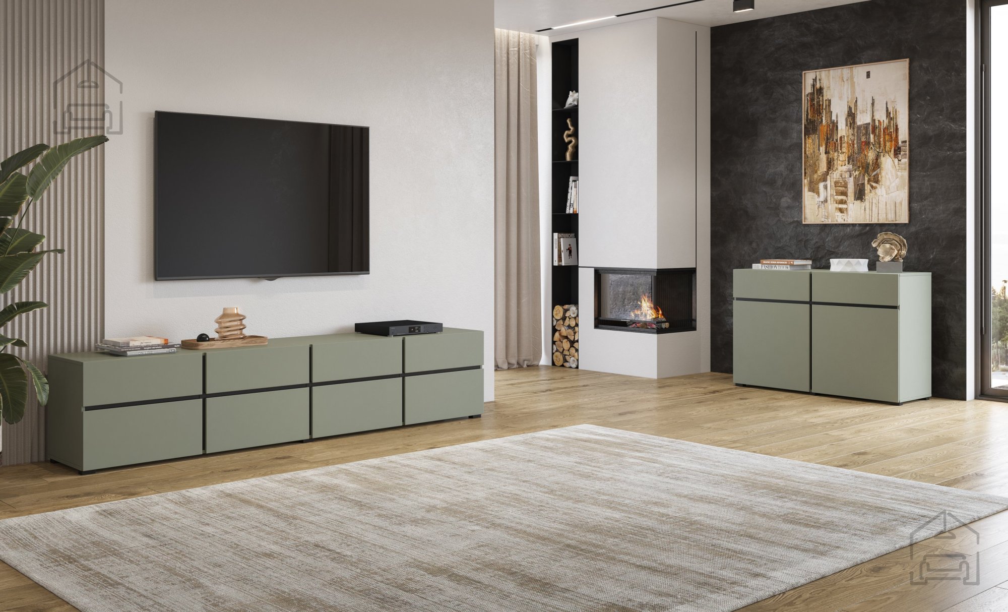 Kommode Cross - grün/grün-schwarz - 249WMY45, ein herausragendes Designkunstwerk, das Eleganz und Funktionalität vereint, ist die perfekte Lösung für Ihr Zuhause. Mit ihrer beeindruckenden Farbkombination und dem durchdachten Design ist diese Kommode mehr als nur ein Möbelstück – sie ist ein Ausdruck Ihres Stils und Geschmacks.