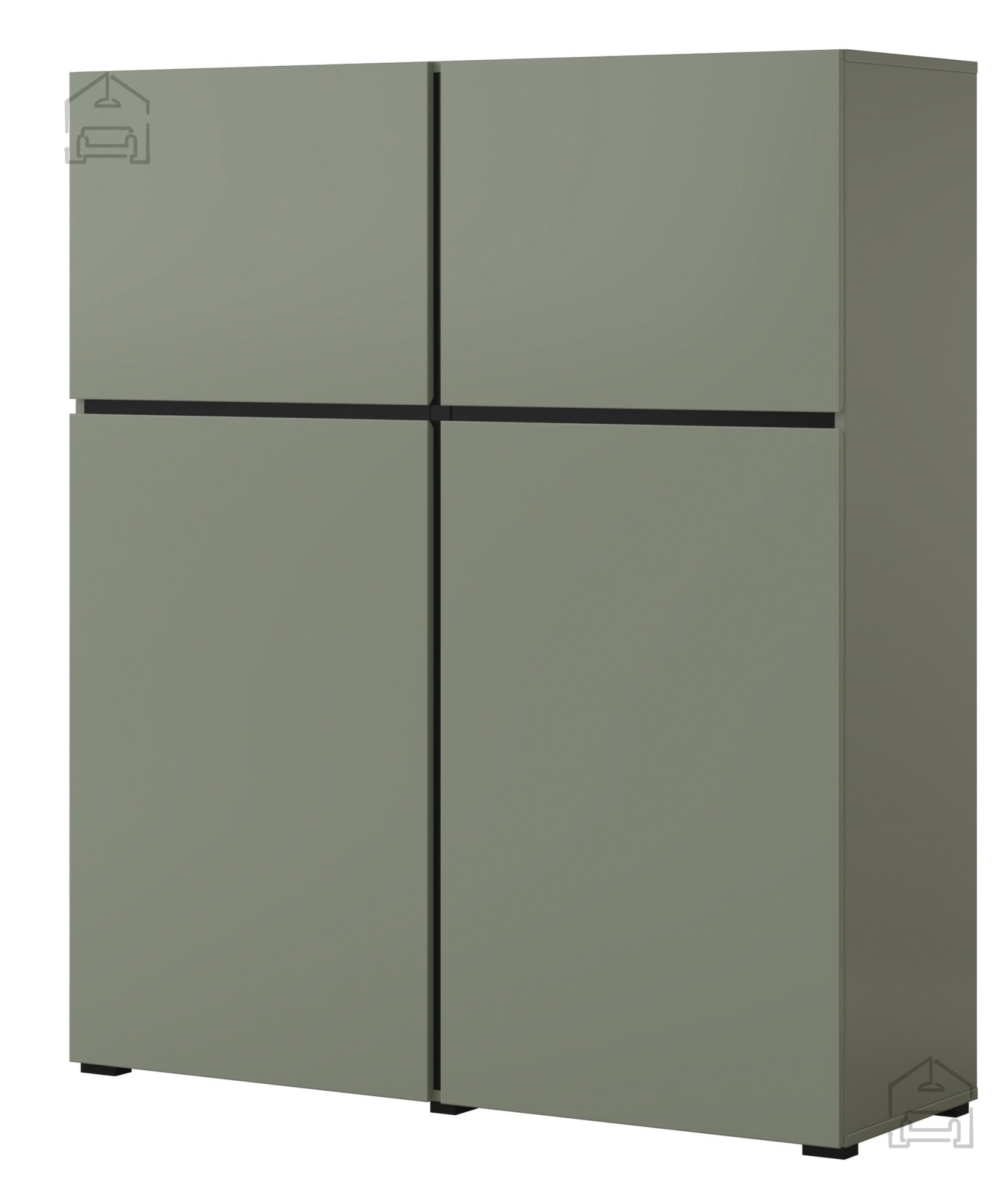 Gefertigt aus hochwertigem MDF-Material, überzeugt die Kommode Cross mit den Maßen 119x40x139 cm, was ausreichend Stauraum bietet, ohne Kompromisse beim Stil einzugehen. Die Farbe der Kommode ist eine Kombination aus Grün und Grün-Schwarz, was ihr einen modernen und trendigen Look verleiht, der sich mühelos in verschiedene Einrichtungsstile einfügt.