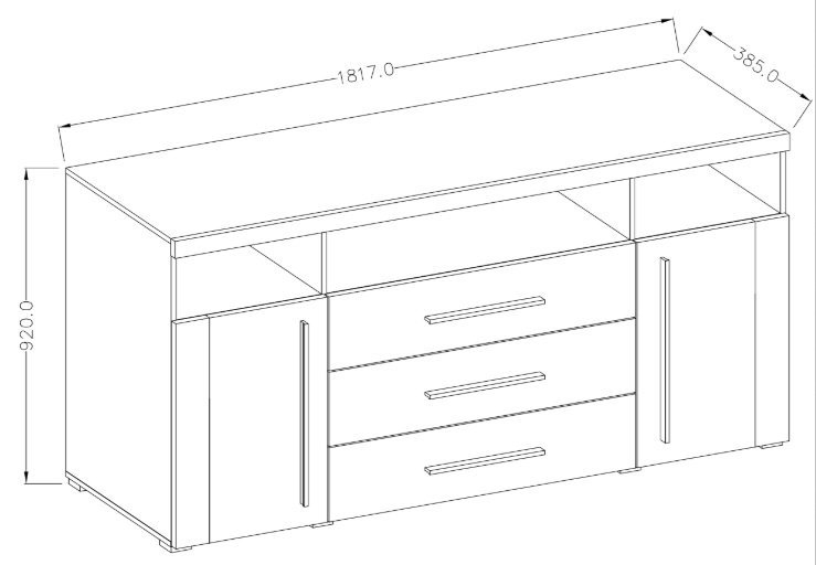 Die Maße dieser beeindruckenden Kommode betragen 182x39x92 cm, was sie zur idealen Wahl für jeden Raum macht, in dem Sie ein Gleichgewicht zwischen Geräumigkeit und Kompaktheit erreichen möchten. Sie ist aus hochwertiger, laminierter Platte gefertigt, die Langlebigkeit und eine lange Lebensdauer garantiert.