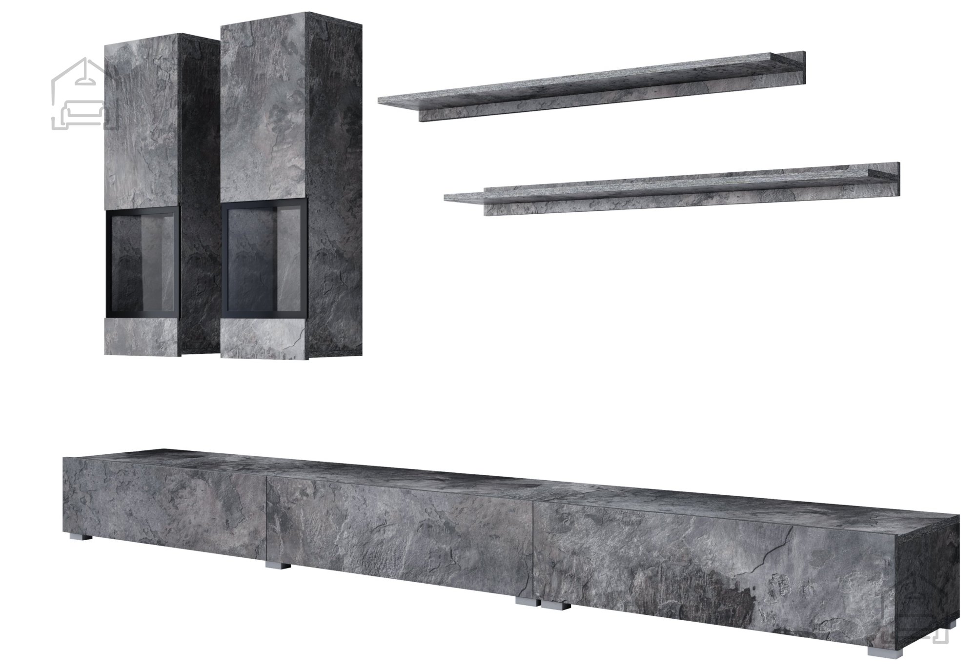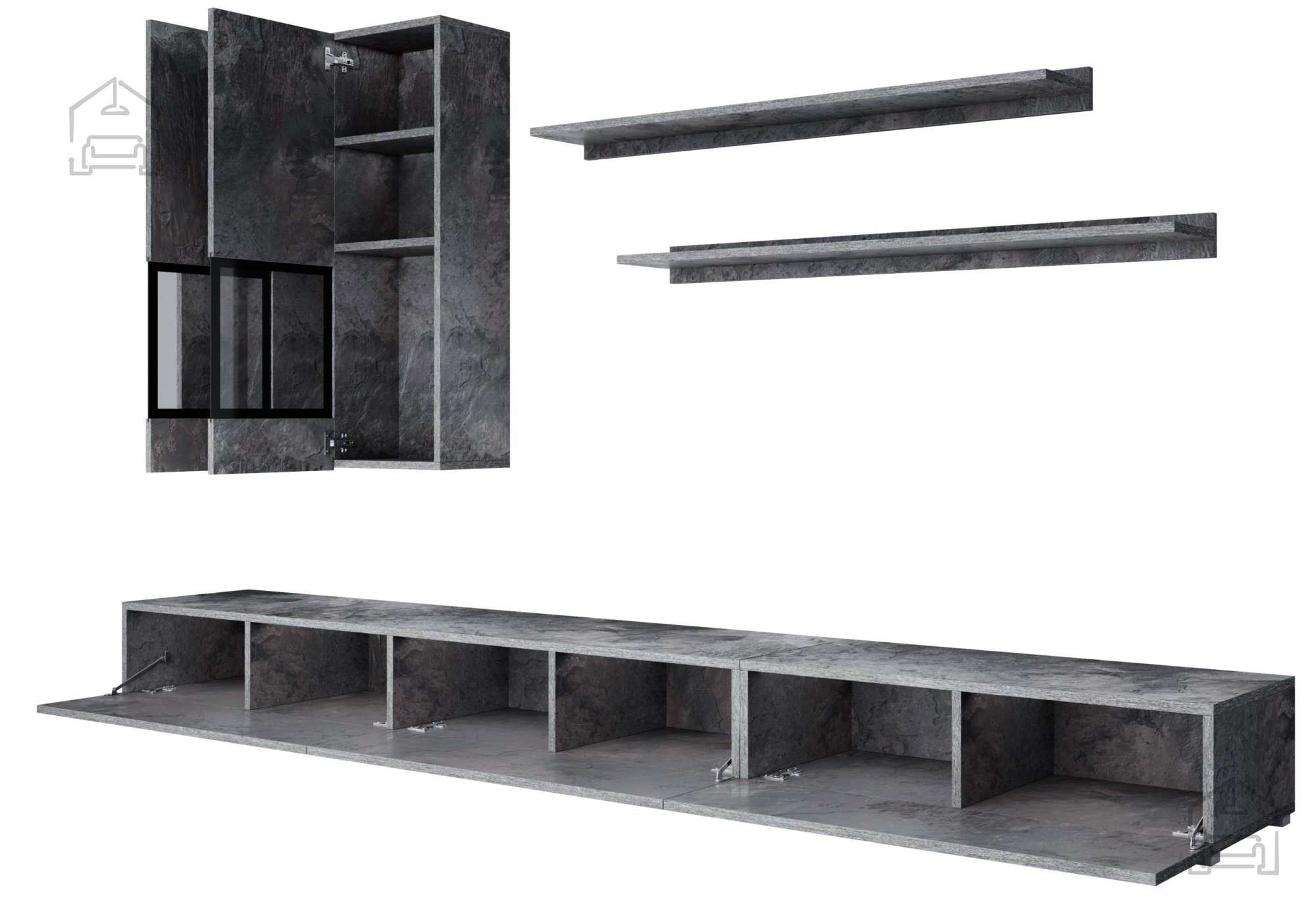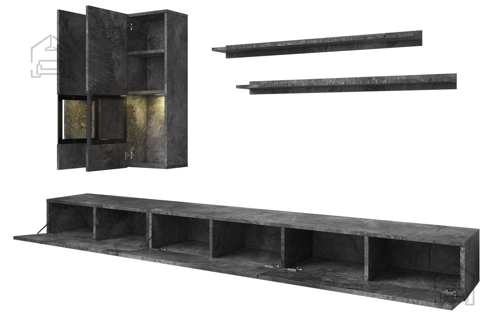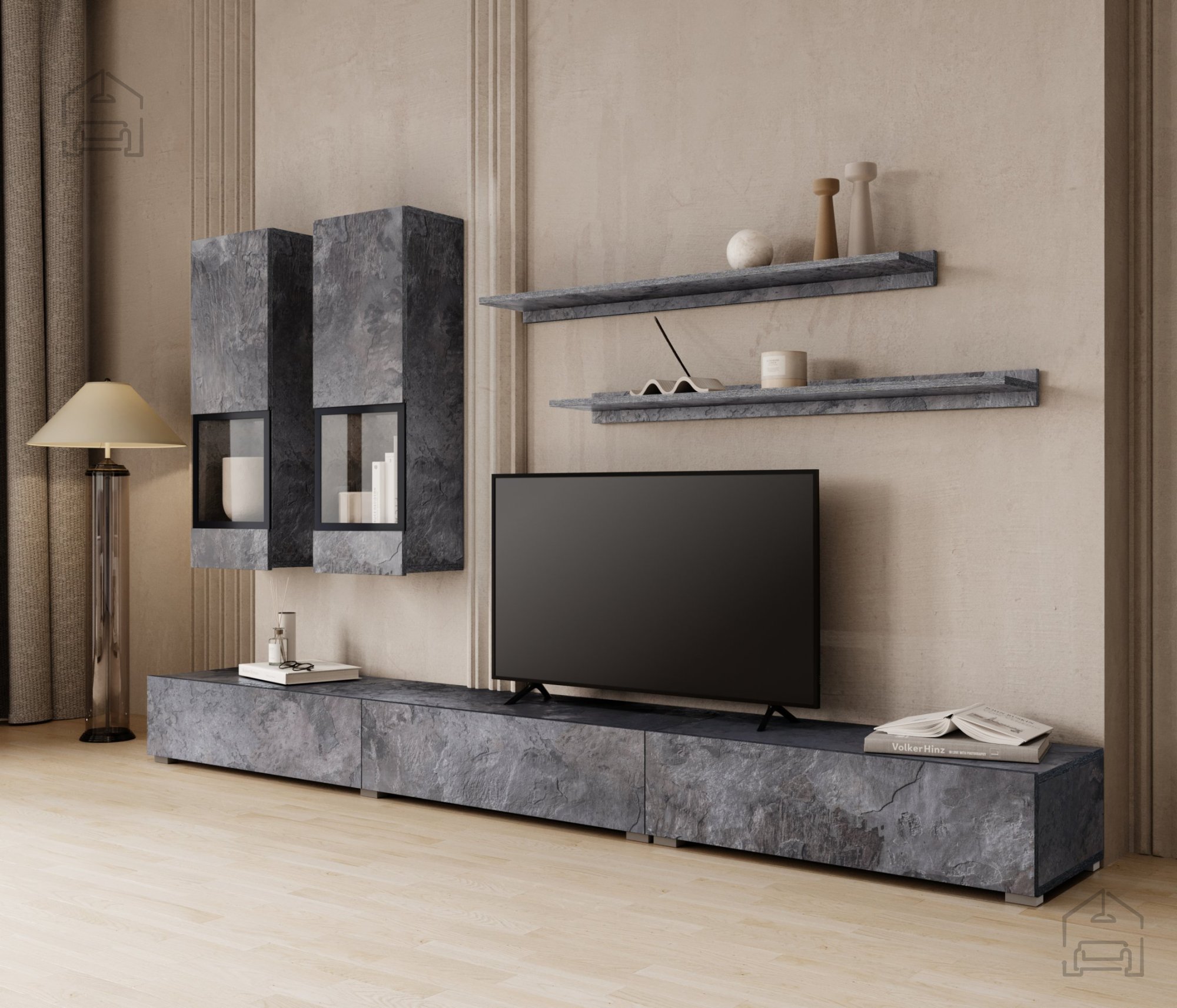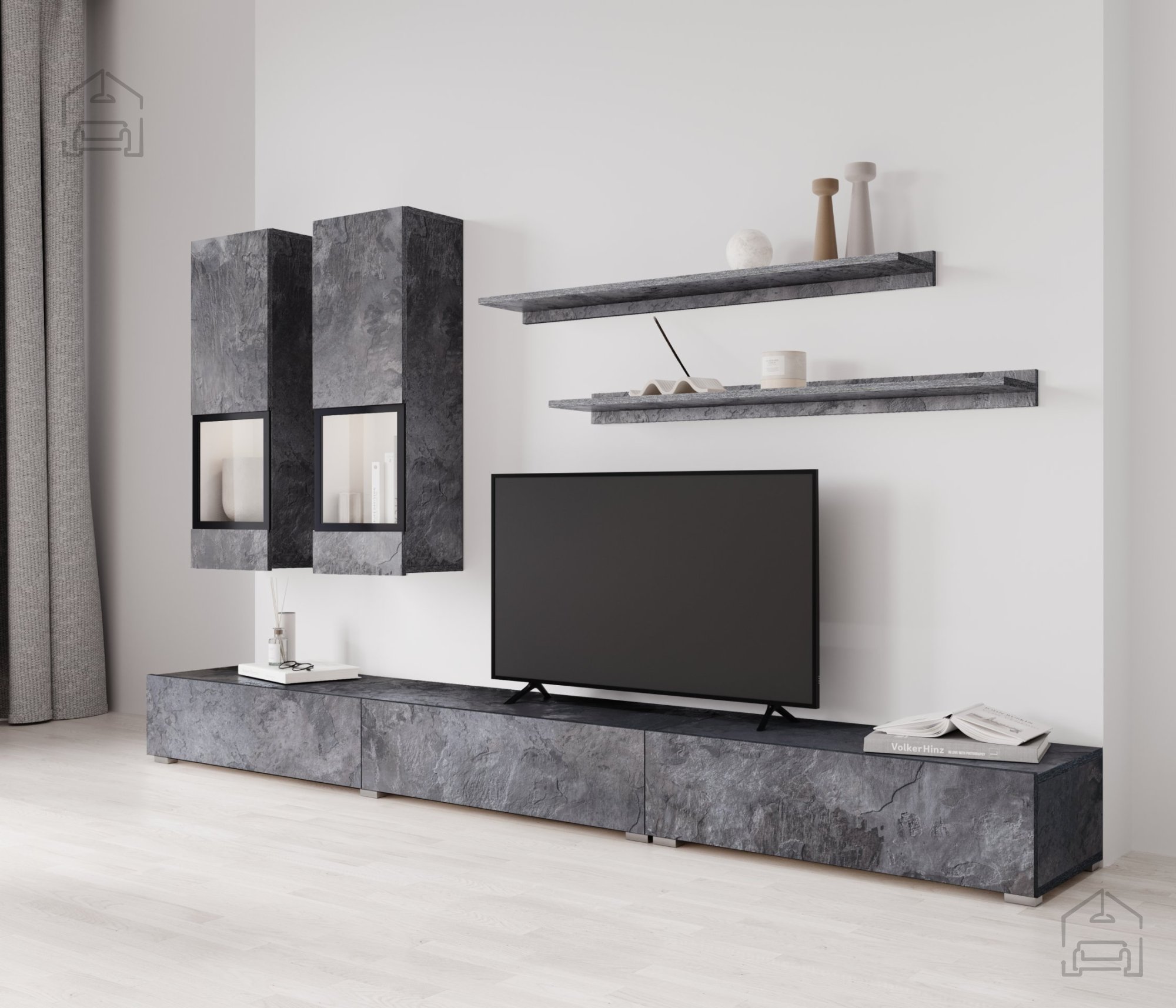 Mit der Wohnwand Baros erhalten Sie mehr als nur ein Möbelstück. Sie erhalten ein Kunstwerk, das Ihrem Zuhause Wert und Stil verleiht. Egal, ob Sie es als zentrales Element Ihres Wohnzimmers oder als funktionales Möbelstück im Büro nutzen – dieses Regal verspricht, all Ihre Erwartungen und Bedürfnisse zu erfüllen. Gönnen Sie sich die perfekte Kombination aus Ästhetik und Funktionalität und bereichern Sie Ihren Raum mit diesem außergewöhnlichen Möbelstück.
