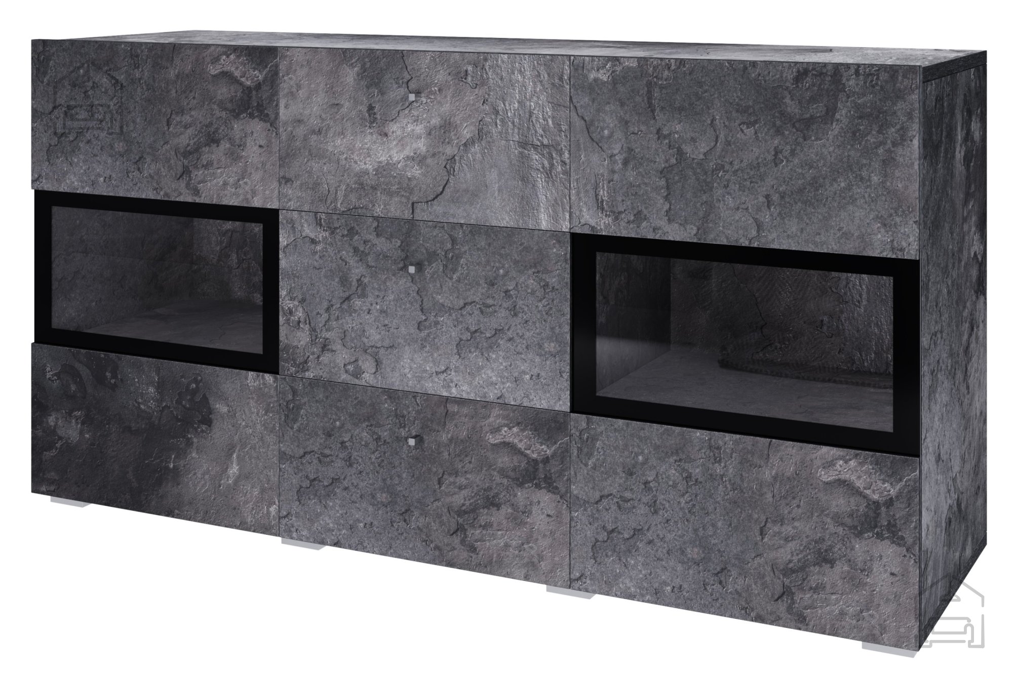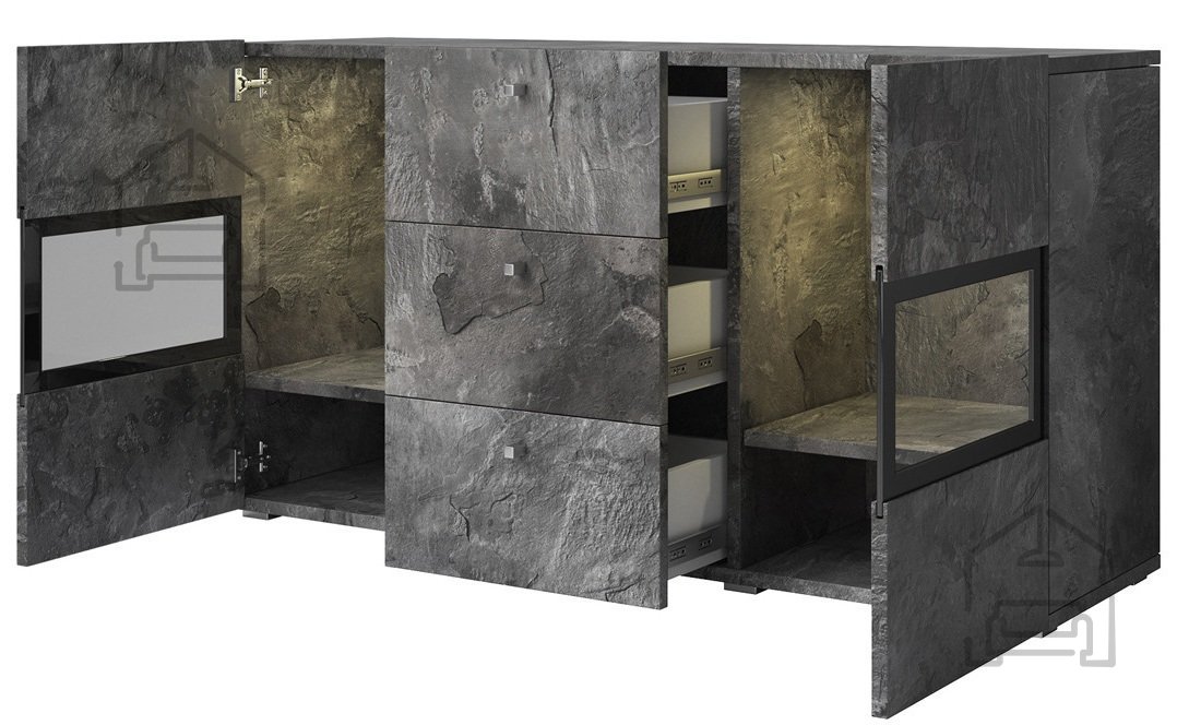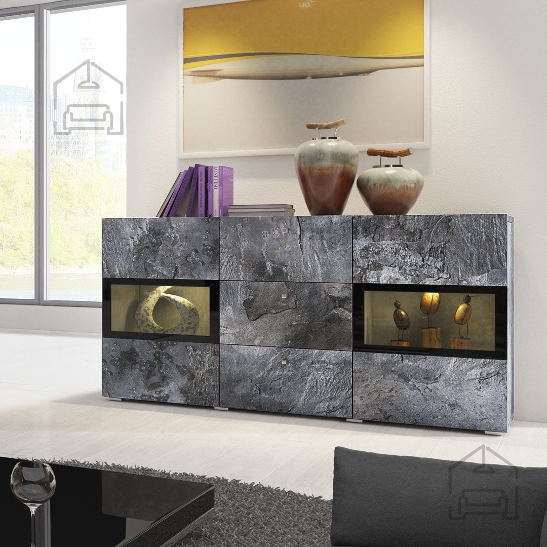 Die Kommode Baros überzeugt mit den Maßen 132x38.5x68.9 cm, was sie ideal für zahlreiche verschiedene Räume macht – vom Wohnzimmer über das Schlafzimmer bis hin zum Büro. Hergestellt aus hochwertiger Spanplatte, garantiert sie Stabilität und Langlebigkeit, sodass sie Ihnen lange Freude bereiten wird. Darüber hinaus sorgt ihre raffinierte Farbkombination Schiefer - Schwarz dafür, dass sie sich perfekt in unterschiedliche Einrichtungsstile einfügt.