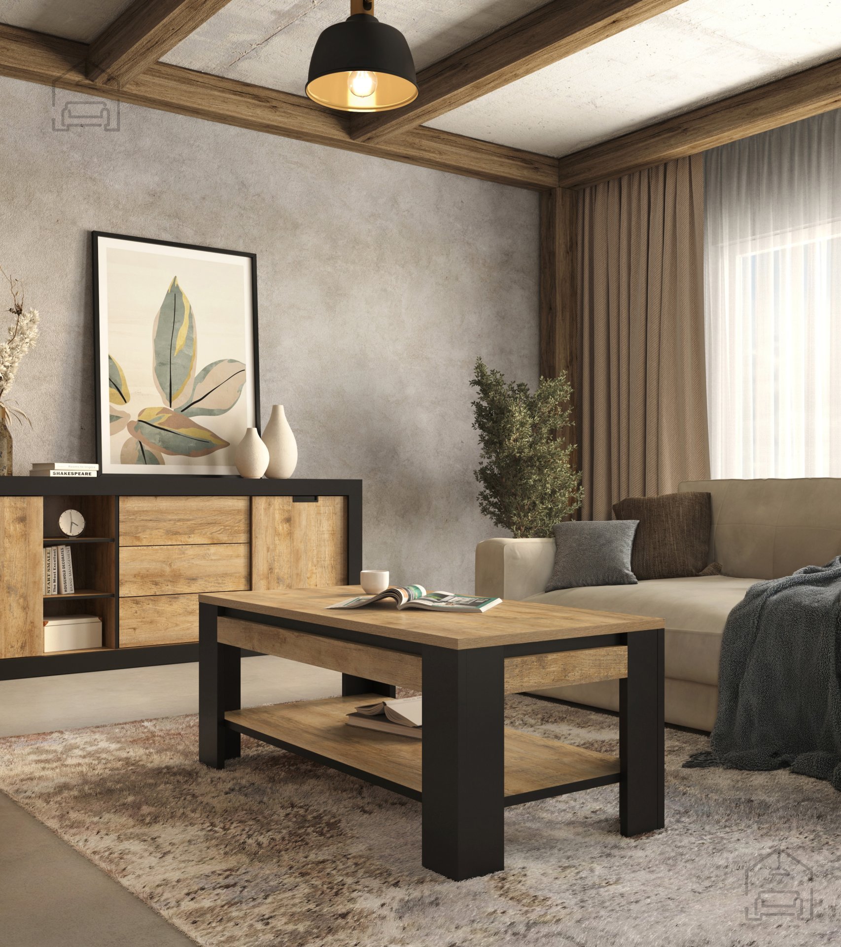 Der Couchtisch Tudor - 24WSNZ99 ist mehr als nur ein Tisch; er ist ein Symbol für Eleganz, Funktionalität und Langlebigkeit. Egal, ob Sie Ihr Zuhause renovieren oder das perfekte Stück zur Ergänzung Ihrer bestehenden Einrichtung suchen – dieser Tisch ist die ideale Wahl. Vertrauen Sie auf die Qualität und das Design aus der Helvetia meble Fabrik und bereichern Sie Ihren Wohnraum mit Stil und Raffinesse.