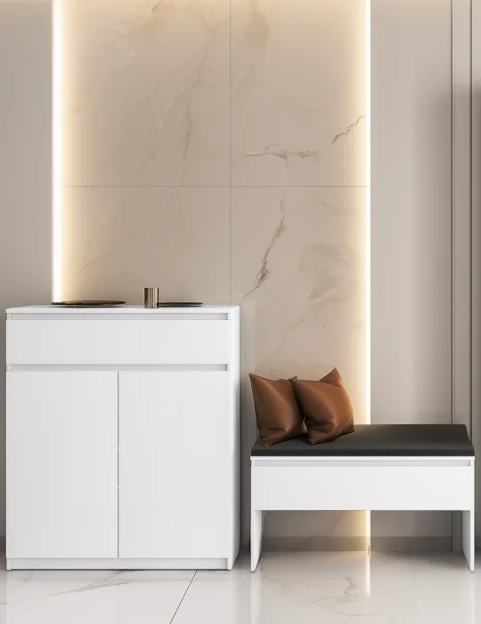 - Elegantes Design: Die weiße Farbe des Flurs Simply sorgt für ein frisches und modernes Aussehen, das sich leicht an verschiedene Einrichtungsstile anpasst. Seine schlichte Ästhetik ermöglicht zudem eine mühelose Kombination mit anderen Möbelstücken und Accessoires.
