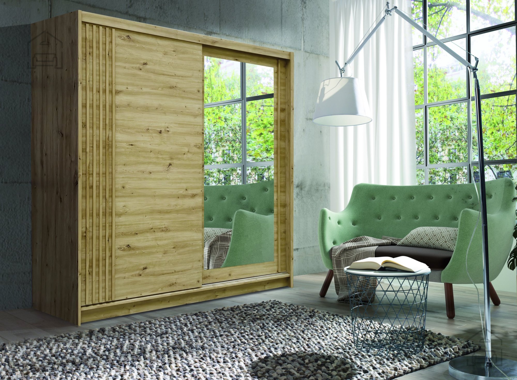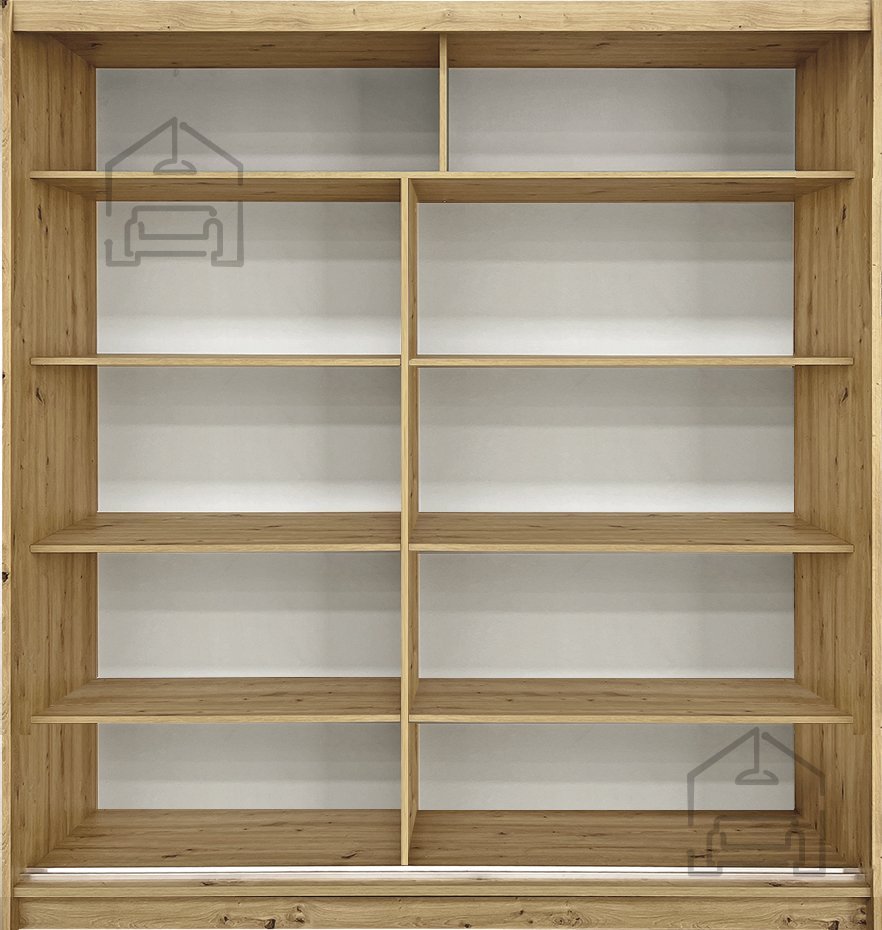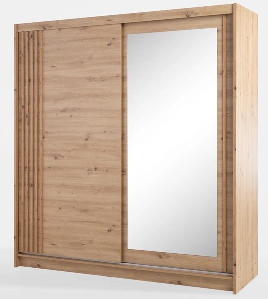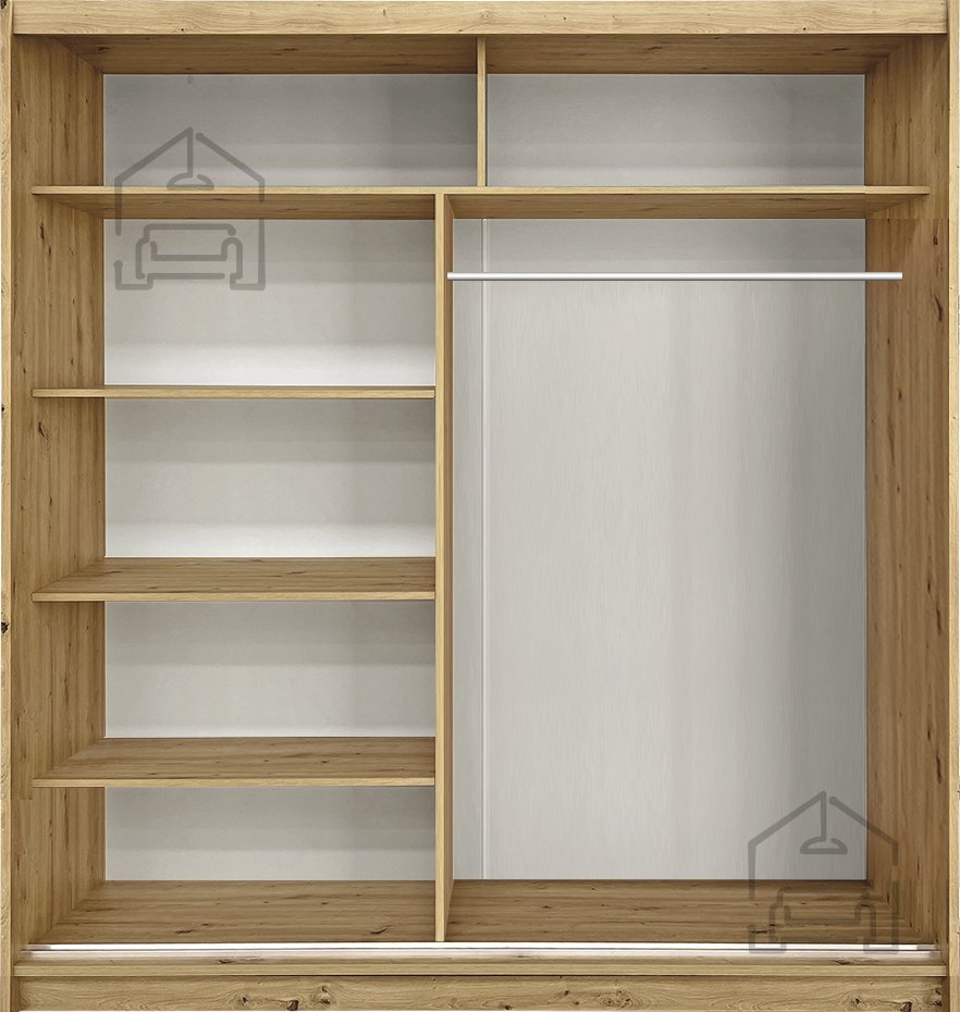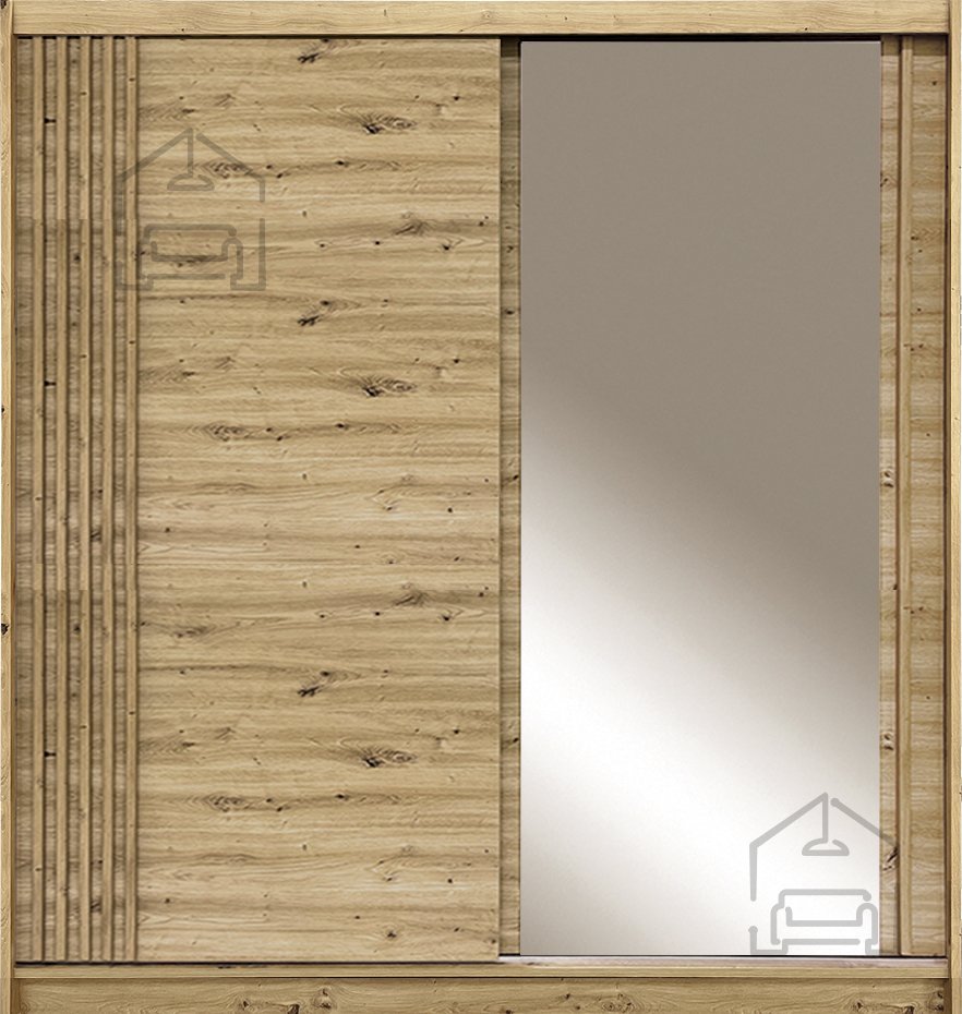 Der Gleitschrank Wien wird in der renommierten Fabrik Fadome in Polen hergestellt, die für ihr Engagement für hohe Qualität und Liebe zum Detail bekannt ist. Die laminierte Platte in der Farbe Eiche Artisan sorgt nicht nur für ein ästhetisches Erscheinungsbild, sondern auch für Langlebigkeit und Widerstandsfähigkeit gegenüber täglichem Verschleiß. Das bedeutet, dass Ihr Schrank seinen Glanz viele Jahre lang behalten wird.