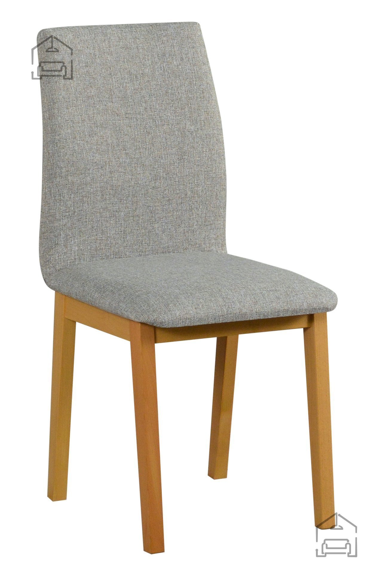 Für die Konstruktion des Stuhls wird massives Buchenholz verwendet, das für seine Dichte und Widerstandsfähigkeit im täglichen Gebrauch bekannt ist. Buche ist eines der geschätztesten Materialien für Möbel, da es sich nicht leicht verformt und seine Form auch nach Jahren behält. Die Sitzfläche ist mit einem hochwertigen stoffbezogenen, angenehm zu berührenden Polster versehen, was den Sitzkomfort zusätzlich erhöht. Die Kombination aus natürlichem Holz und weichem Stoff schafft ein angenehmes Gleichgewicht zwischen Festigkeit und Komfort und wirkt zugleich warm und einladend.