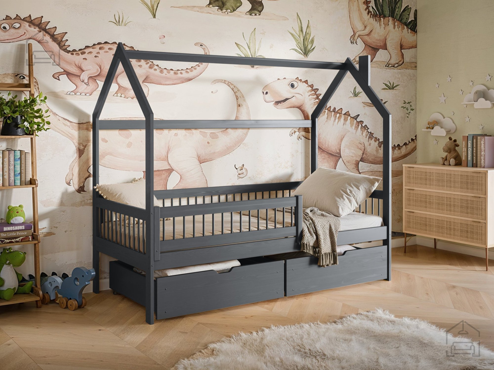 Das Kinderbett Haus Oskar - 80x180 cm in Graphit ist mehr als nur ein Möbelstück; es ist ein Element, das das Kinderzimmer verwandeln und die Nächte angenehmer sowie die Tage spannender für Ihr Kind machen kann. Verpassen Sie nicht die Gelegenheit, Ihrem Kind das Beste zu bieten, was der Markt bereithält – mit einem langlebigen, schönen und funktionalen Bett. Wählen Sie das Kinderbett Haus Oskar und bereichern Sie das Leben Ihres Kindes mit neuen Möglichkeiten zum Spielen und Ausruhen.