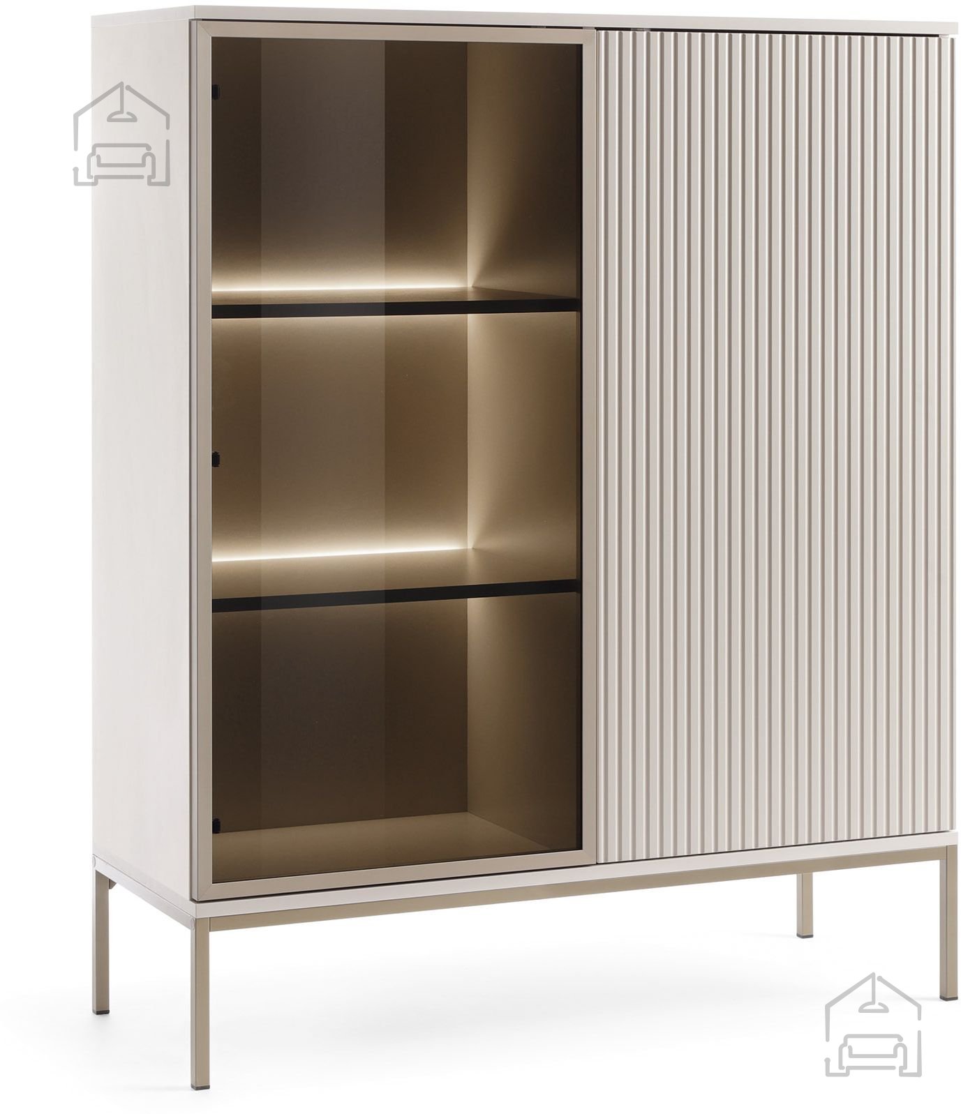 Die Vitrine Sento WT104, hergestellt in der renommierten Fabrik Piaski in Polen, ist mehr als nur ein Möbelstück. Sie ist ein Ausdruck von raffiniertem Stil und moderner Funktionalität, entworfen, um zum Mittelpunkt Ihres Wohnraums zu werden. Mit ihren Abmessungen von 104x39x126 cm ermöglicht sie Ihnen, den Raum auf elegante Weise zu nutzen, während die Farbe Kaschmir Wärme und Raffinesse in Ihr Zuhause bringt.