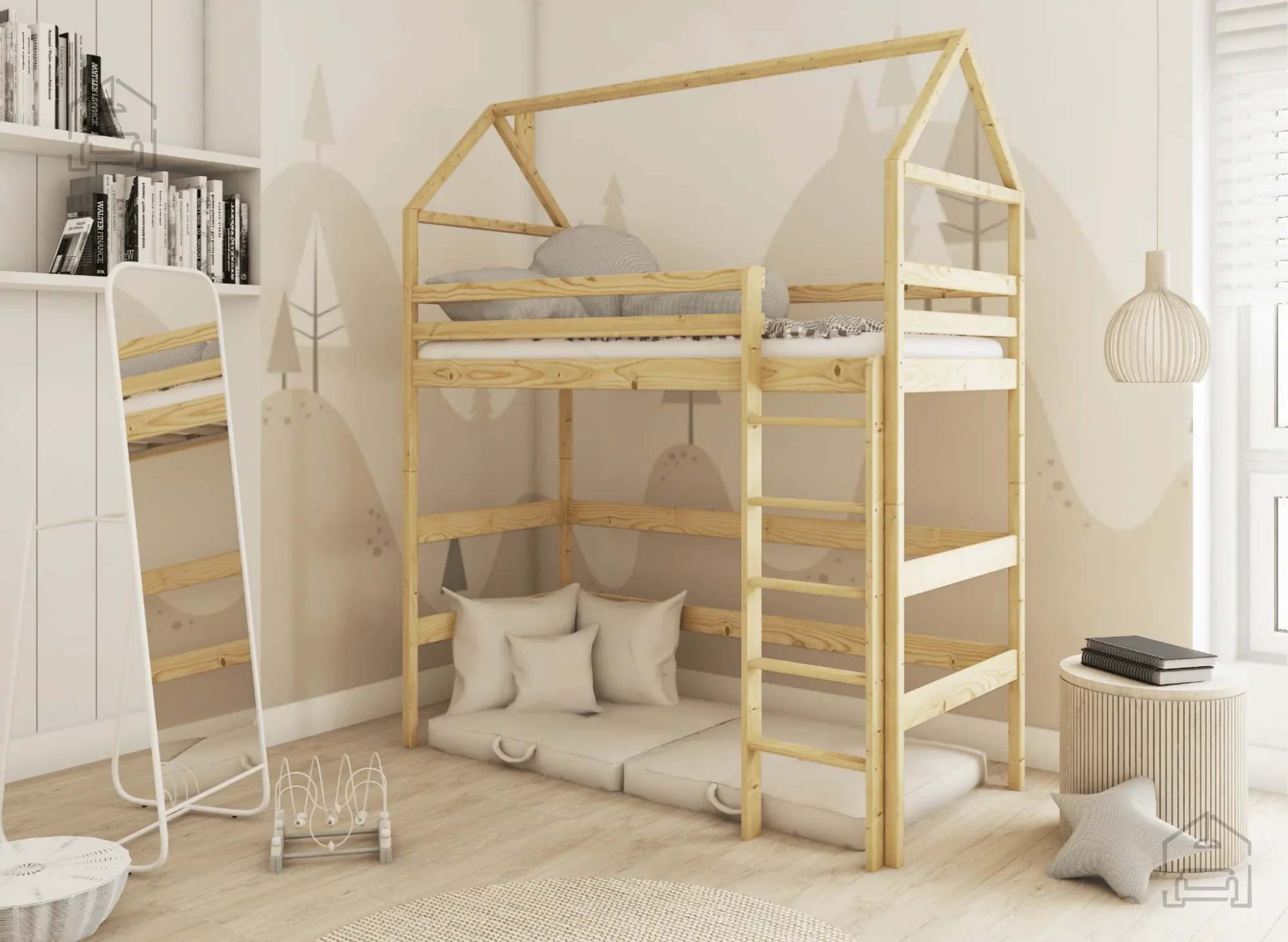 Wir präsentieren Ihnen das Etagenbett Gloria, die ideale Wahl für alle, die den Platz in ihrem Zuhause auf bestmögliche Weise nutzen möchten. Dieses elegante Bett ist aus hochwertigem Kiefernholz gefertigt, was Langlebigkeit und Stabilität garantiert. Mit seiner natürlichen Holzfarbe verleiht das Bett Gloria jedem Raum einen Hauch von Eleganz und Wärme.