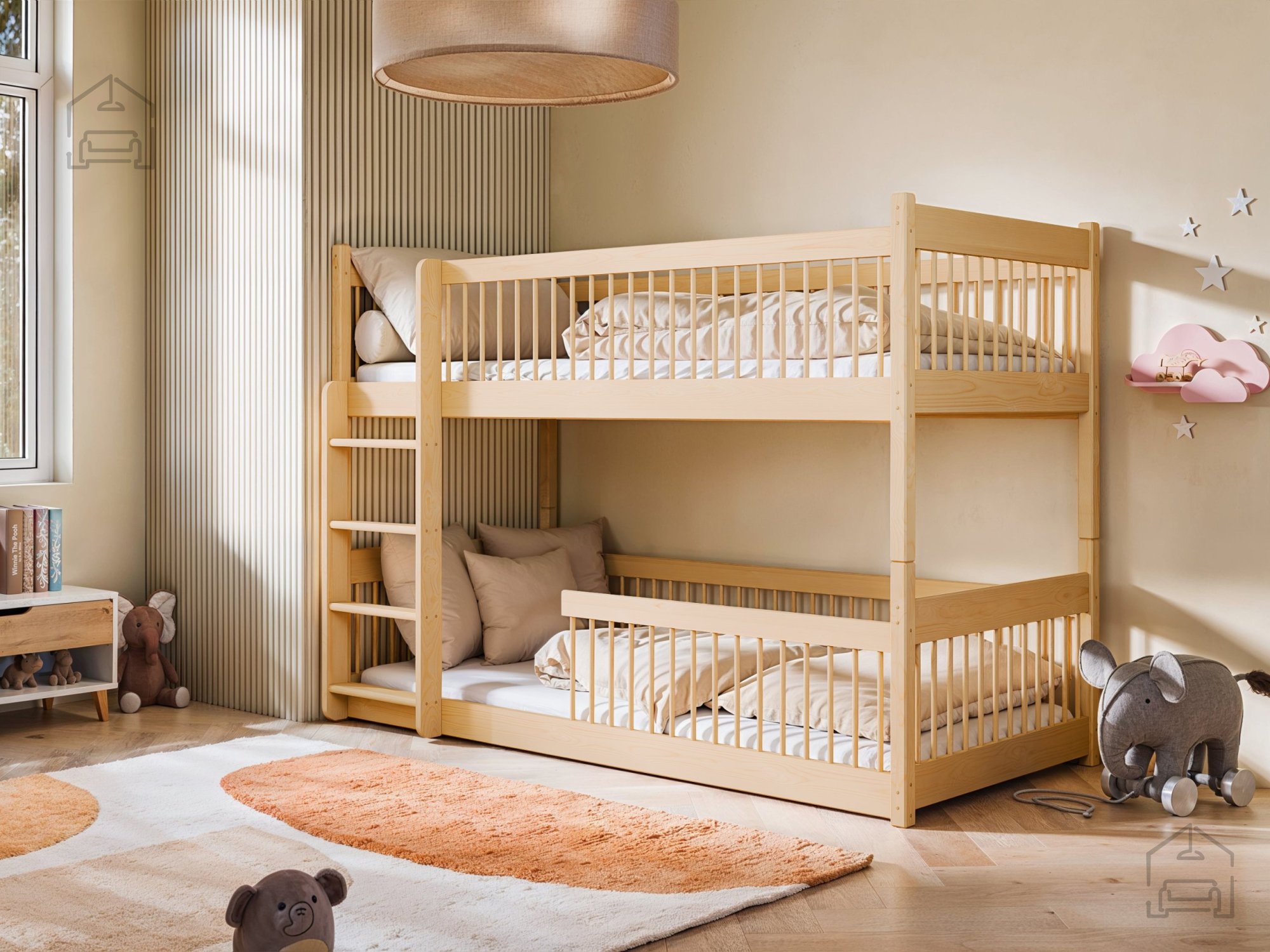 Das Etagenbett Boston - 80x180 cm - Kiefer ist nicht nur ein Möbelstück, sondern eine Investition in den Komfort und die Sicherheit Ihrer Kinder. Mit hochwertigen Materialien, durchdachtem Design und ästhetischer Attraktivität ist dieses Etagenbett eine hervorragende Wahl für jede Familie, die langlebige und qualitative Möbel wünscht. Verpassen Sie nicht die Gelegenheit, Ihrem Kinderzimmer ein funktionales und elegantes Element hinzuzufügen, das Ihrer Familie viele Jahre dienen wird. Wenn Sie ein Etagenbett suchen, das die besten Eigenschaften in einem Produkt vereint, ist das Etagenbett Boston die richtige Wahl für Sie. Seine Kombination aus Qualität, Sicherheit und Ästhetik wird all Ihre Bedürfnisse und Erwartungen erfüllen. Wählen Sie das Etagenbett Boston und schaffen Sie für Ihre Kinder einen komfortablen und sicheren Ort zum Schlafen und Spielen.