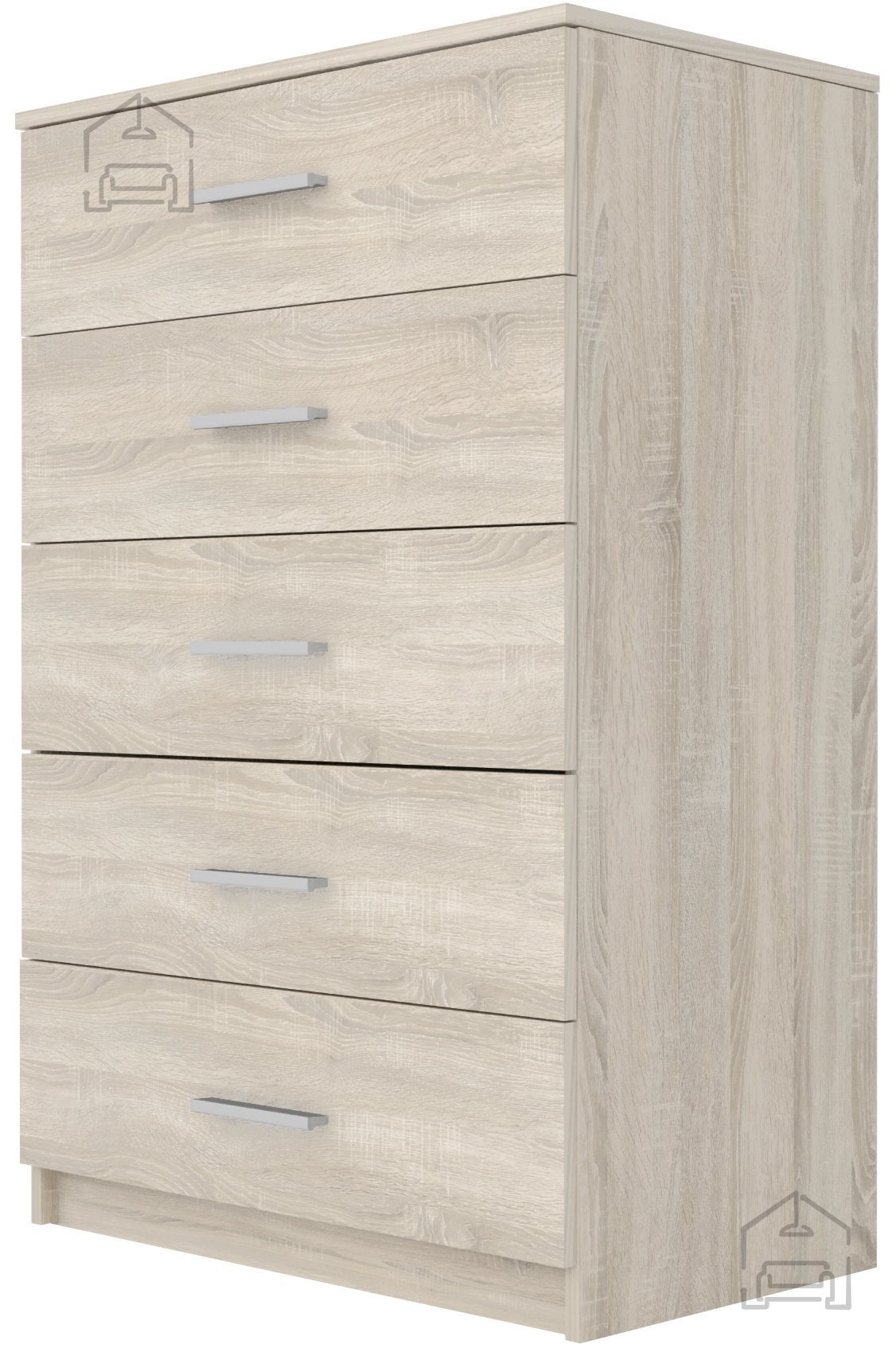 Die Kommode Combo ist aus hochwertiger Spanplatte gefertigt, die Haltbarkeit und eine lange Lebensdauer gewährleistet. Ihre Sonoma-Eichenfarbe verleiht einen Hauch von Raffinesse und fügt sich mühelos in verschiedene Farbschemata Ihres Hauses ein. Dieses Produkt ist nicht nur ästhetisch ansprechend, sondern auch äußerst praktisch, da es eine optimale Organisation Ihrer Gegenstände bietet.