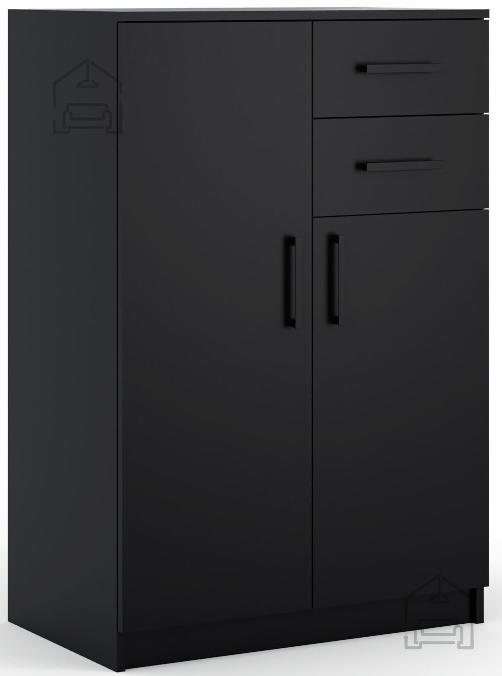 Die Kommode Posejdon ist nicht nur ästhetisch ansprechend, sondern auch äußerst funktional. Mit ihrer schwarzen Farbe verleiht sie einen Hauch von Raffinesse und lässt sich leicht mit verschiedenen Innendekoren kombinieren. Das Material aus Spanplatte gewährleistet Haltbarkeit und eine lange Lebensdauer, was bedeutet, dass dieses Möbelstück Ihrer Familie viele Jahre dienen wird.