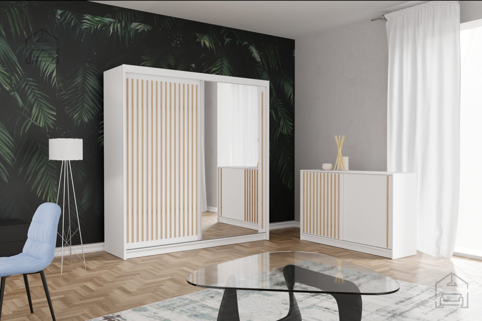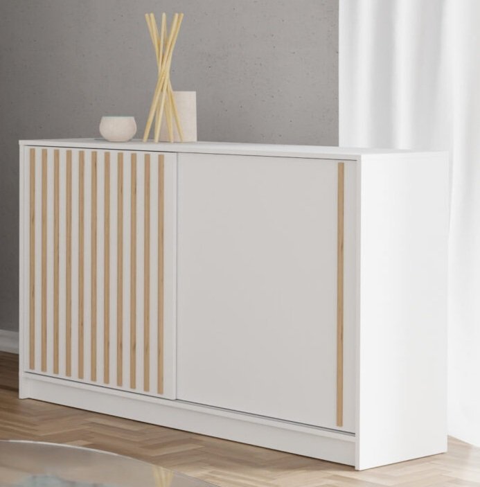 Die Kommode Royal zeichnet sich durch ihr einzigartiges Design und durchdachte Details aus. Ihre Farbkombination aus Weiß und Wotan-Eiche bringt Frische und Wärme in jeden Raum. Diese Kommode, hergestellt in der renommierten Fabrik Arkos meble in Polen, steht für hohe europäische Qualität und Präzision.