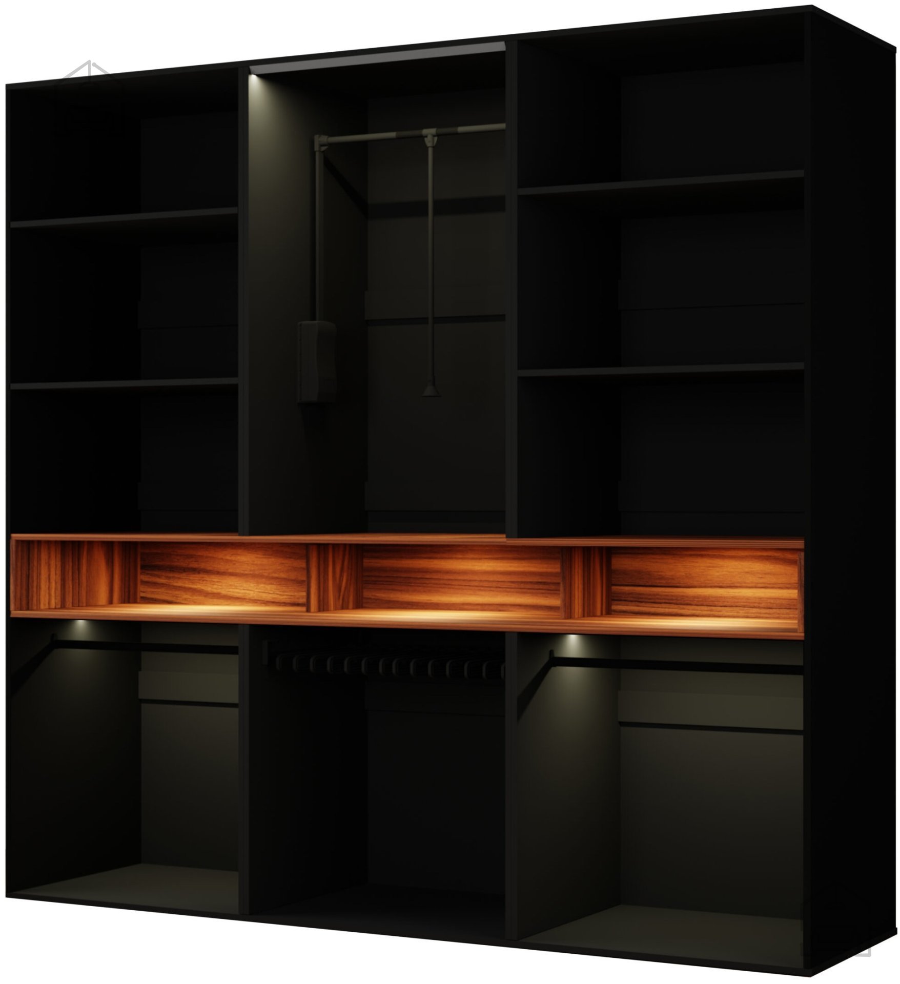 Der Kleiderschrank Laura ist mehr als nur ein Möbelstück – er ist eine Investition in eine bessere Organisation und den Komfort Ihres Zuhauses. Sein durchdachtes Design und seine hohe Funktionalität sind auf die modernen Bedürfnisse der Nutzer abgestimmt, die sowohl Ästhetik als auch Praktikabilität schätzen. Darüber hinaus trägt die schwarze Hochglanzoberfläche zu einem Gefühl von Geräumigkeit und Helligkeit in Ihrem Raum bei.