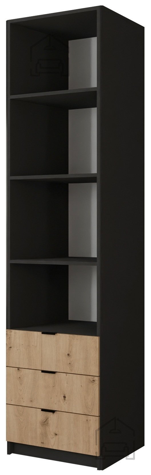 Entdecken Sie die Raffinesse und Funktionalität, die der Kleiderschrank Jaxon mit sich bringt. Dieser wunderschöne Schrank setzt neue Maßstäbe für moderne Inneneinrichtung, da er ästhetisches Design mit praktischer Nutzung vereint. Er ist aus hochwertiger Spanplatte gefertigt, die eine lange Lebensdauer und Widerstandsfähigkeit gegen täglichen Verschleiß gewährleistet. In Kombination mit der wunderschönen schwarzen Farbe und eleganten Elementen in der Nuance Wotan-Eiche ist dieser Schrank die ideale Wahl für jedes Zuhause.