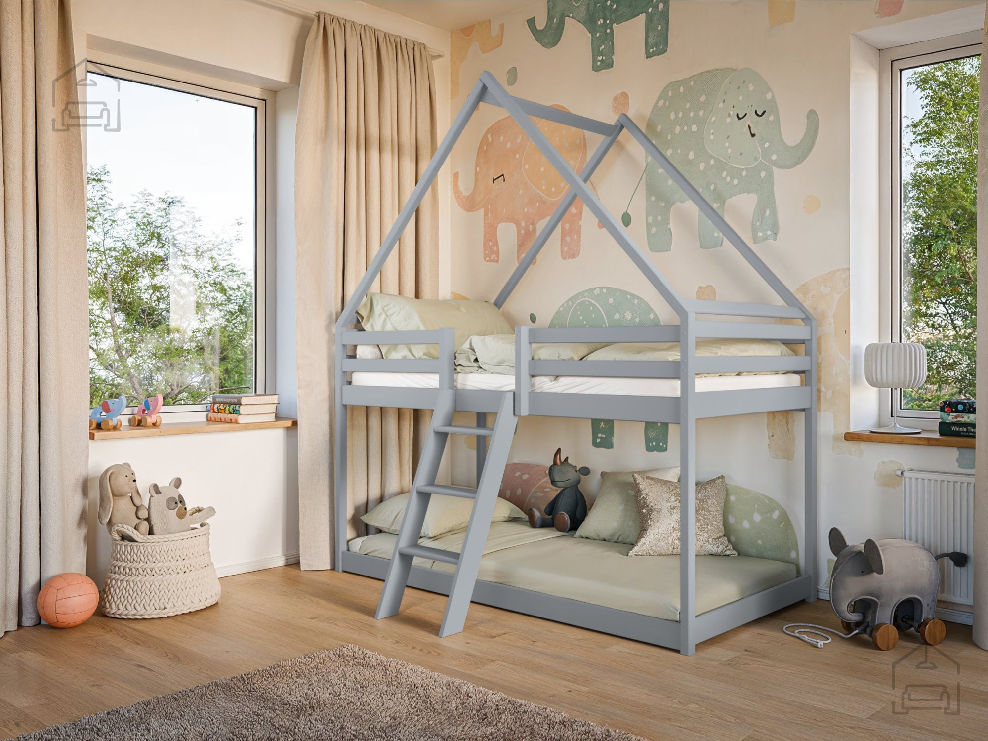 Das Etagenbett Sweet besteht aus erstklassigem Kiefernholz, was nicht nur optische Attraktivität, sondern auch eine lange Lebensdauer garantiert. Die Holzkonstruktion ist für ihre Robustheit bekannt, was bedeutet, dass dieses Etagenbett den täglichen Aktivitäten von Kindern standhält. Die graue Farbe fügt sich mühelos in verschiedene Einrichtungsstile ein und ermöglicht eine einfache Integration in jedes Kinderzimmer.