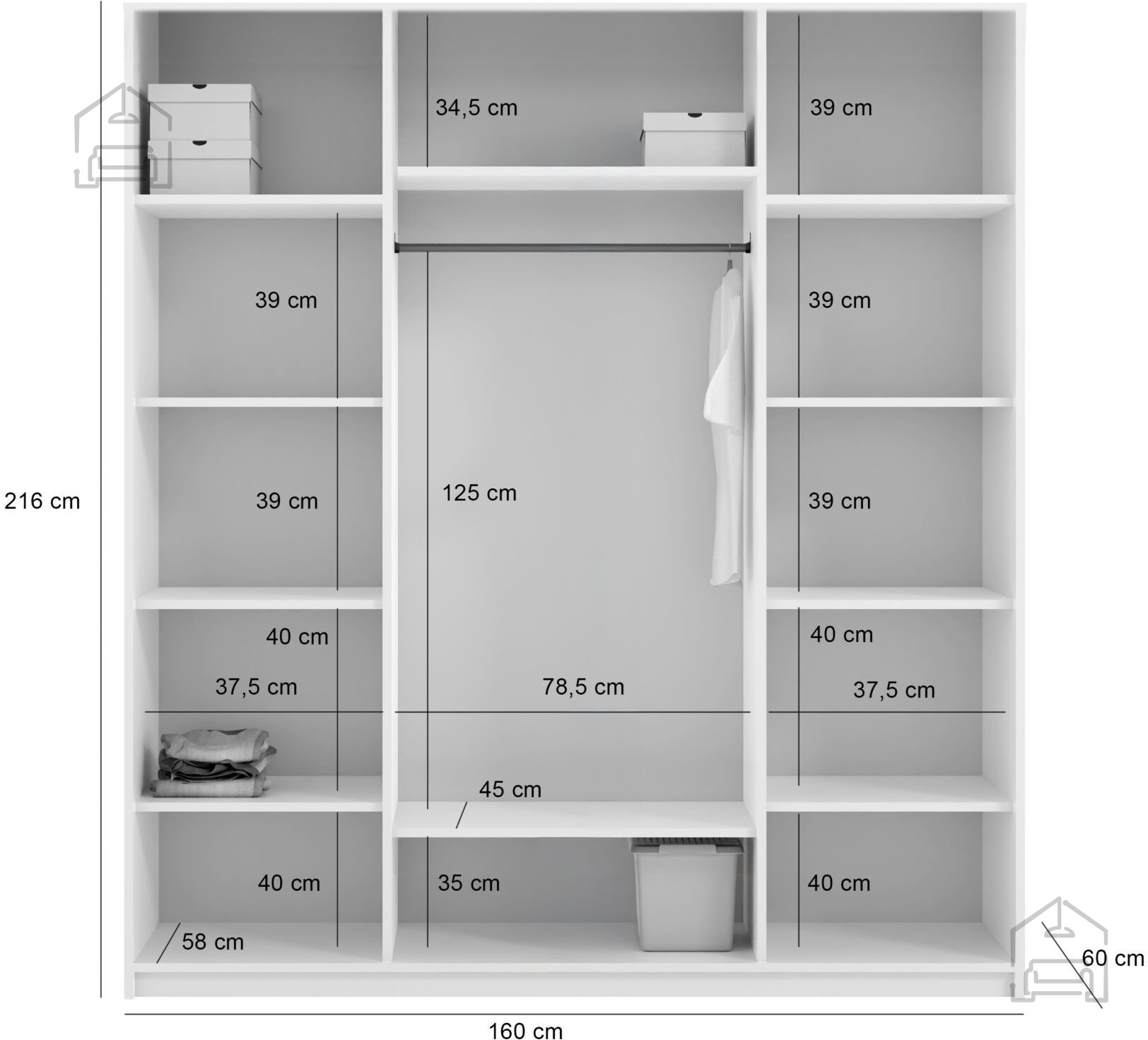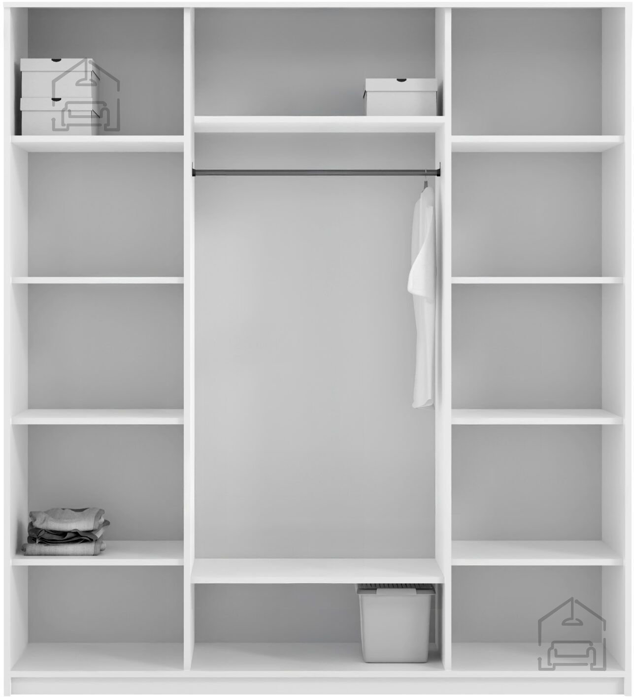Optimierter Stauraum: Mit einer Innenaufteilung, die Regale und Kleiderstangen umfasst, können Sie Ihre Kleidung, Schuhe und Accessoires leicht organisieren. Der Spiegel am Schrank sorgt für Funktionalität und vergrößert den Raum optisch.