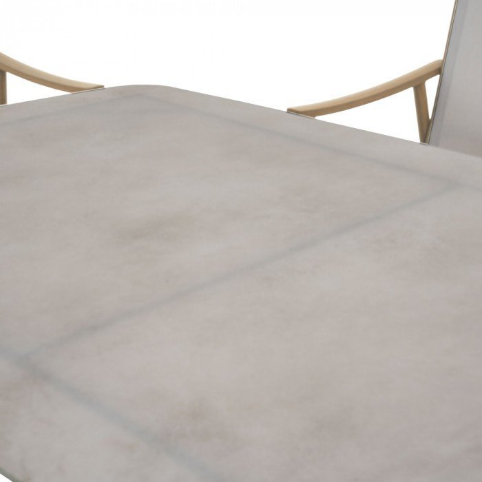 Der Grundrahmen des Gartensets Napa besteht aus pulverbeschichtetem Aluminium, was bedeutet, dass er gegen Rost, Feuchtigkeit und UV-Strahlen beständig ist. Eine solche Beschichtung gewährleistet, dass die Möbel ihr ursprüngliches Aussehen auch nach mehreren Saisons im Freien behalten. Aluminium ist für seine Leichtigkeit bekannt, weshalb das Set leicht zu bewegen ist, wenn die Anordnung geändert oder es während der Nichtnutzung der Terrasse verstaut werden soll. Die Tischplatte aus Keramik verleiht einen Hauch von Luxus und gleichzeitig Praktikabilität, da sie kratz-, hitze- und fleckenbeständig ist, was die Reinigung und Pflege erheblich erleichtert.