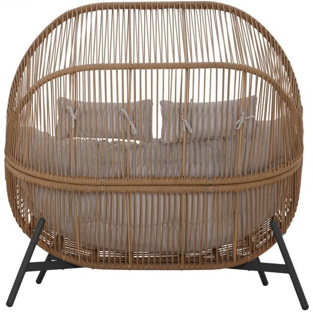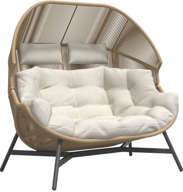Der Gartensessel ermöglicht Entspannung in jeder Position. Die Sitzfläche ist ausreichend groß, damit zwei Personen gleichzeitig darauf Platz nehmen können. Ausgestattet mit dicken und weichen Kissen, die den Komfort zusätzlich erhöhen. Der elegante Sessel eignet sich hervorragend als Ausstattung für den häuslichen Entspannungsbereich. Das Möbelstück ist universell, da es sich auch erfolgreich als Einrichtung im Haus bewährt. Es wird perfekt in ein großes Wohnzimmer im modernen Stil passen. Es wird zum Lieblingsplatz zum Entspannen für jedes Familienmitglied.